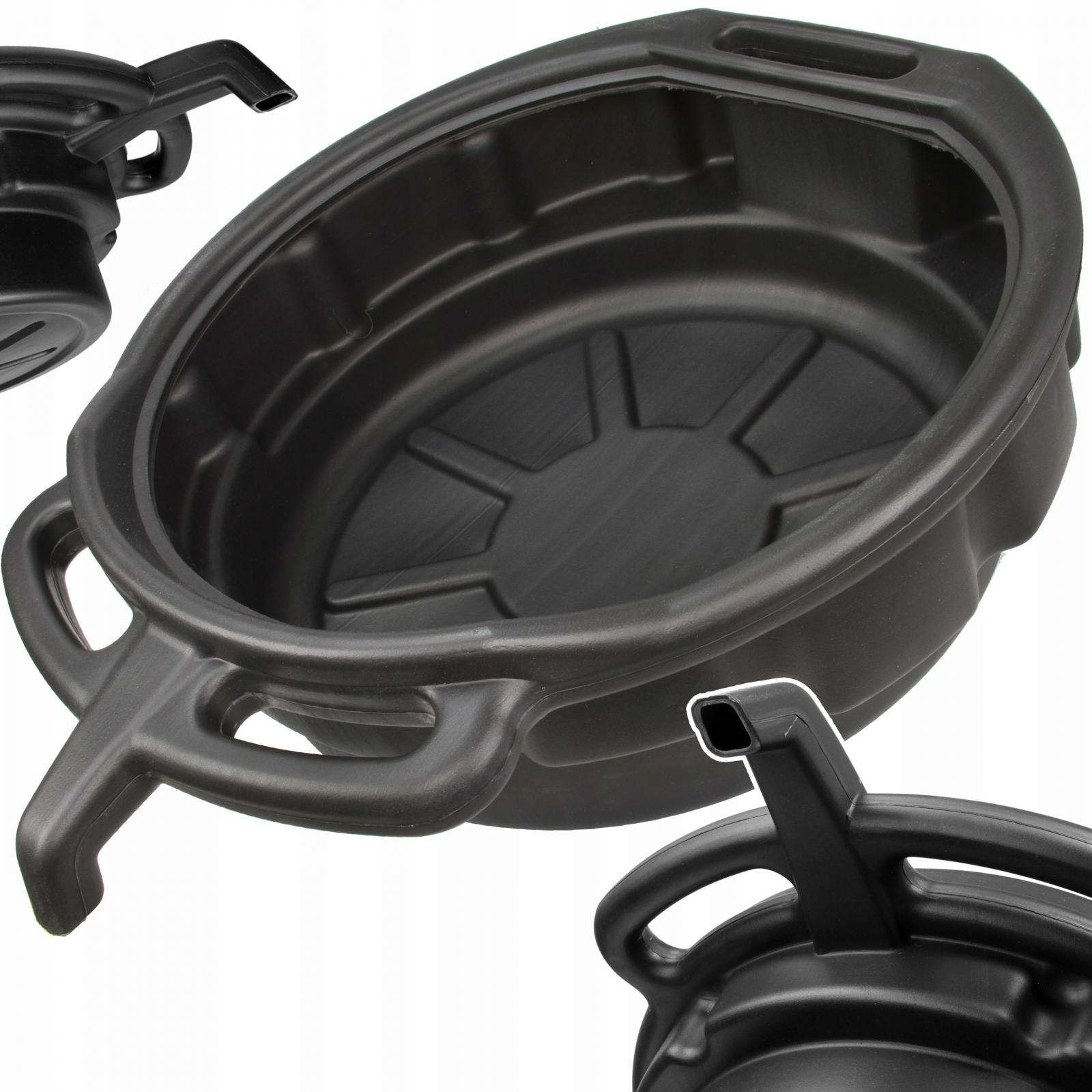 Util la schimbarea uleiului sau a lichidului de răcire într-o mașină. Înălțimea mică a bolului facilitează glisarea lui sub mașină.