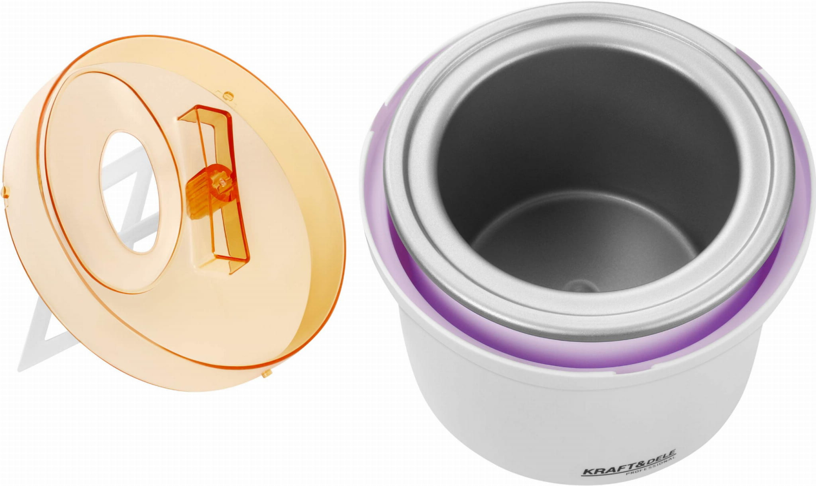KD4221 este un accesoriu practic pentru prepararea înghețatei de casă, conceput pentru a funcționa cu mașina de pâine KRAFT&DELE KD4220. Cu acesta, puteți prepara cu ușurință deserturi congelate proaspete, de casă, adaptate preferințelor dumneavoastră gustative. Dispozitivul este echipat cu un recipient termic cu pereți dubli care menține o temperatură scăzută timp de mai multe ore. Acest lucru asigură o preparare eficientă a înghețatei, iar desertul rezultat este cremos și perfect fin. Capacul transparent permite monitorizarea continuă a procesului de amestecare și a stării înghețatei preparate. Modelul KD4221 dispune de o lamă specială de amestecare care funcționează împreună cu mecanismul aparatului KD4220, încetinind viteza aparatului în timpul preparării înghețatei. Acest lucru asigură amestecarea completă a ingredientelor, rezultând o textură uniformă a desertului. Plasticul de înaltă calitate utilizat în construcția accesoriului îl face ușor de curățat și previne lipirea reziduurilor de ingrediente de suprafață.