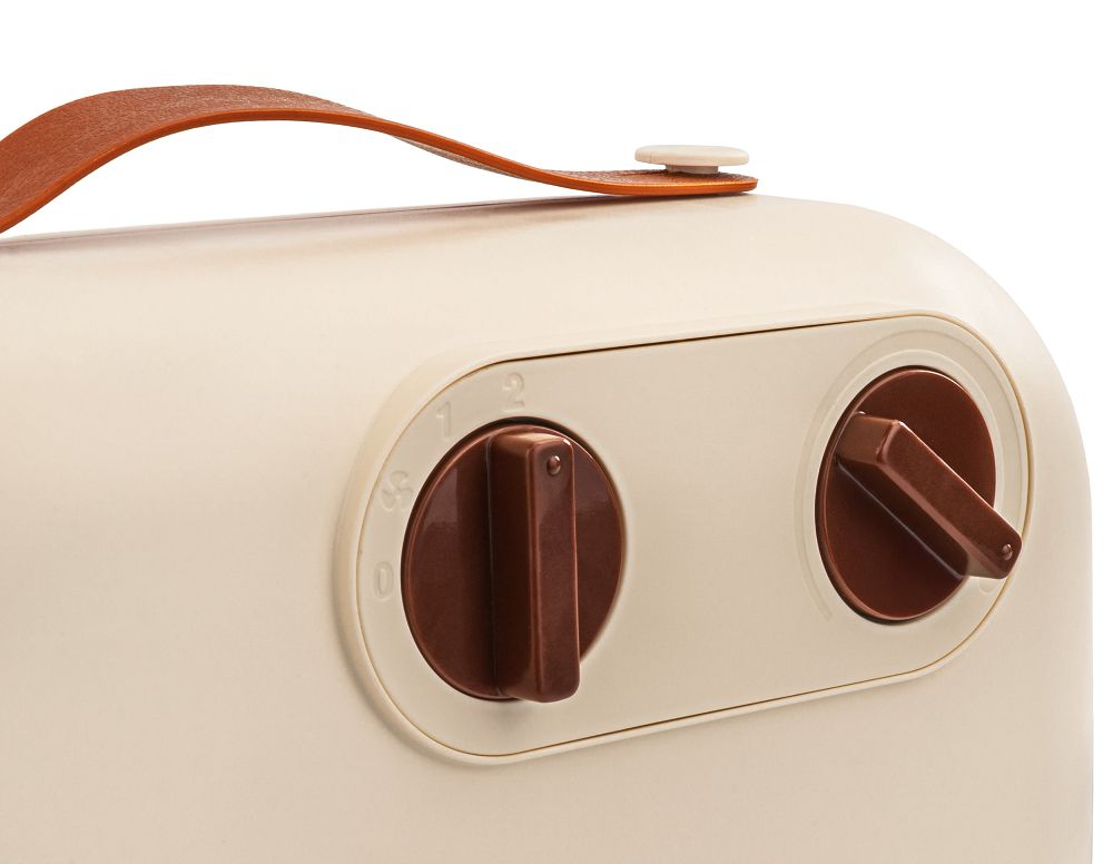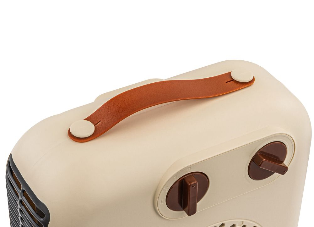 Aerotermul cu ventilator este echipat cu un mâner ergonomic care facilitează deplasarea în siguranță între camere. Datorită designului său ușor și centrului de greutate bine echilibrat, dispozitivul poate fi mutat cu ușurință din baie în sufragerie, birou sau casă de vară.
