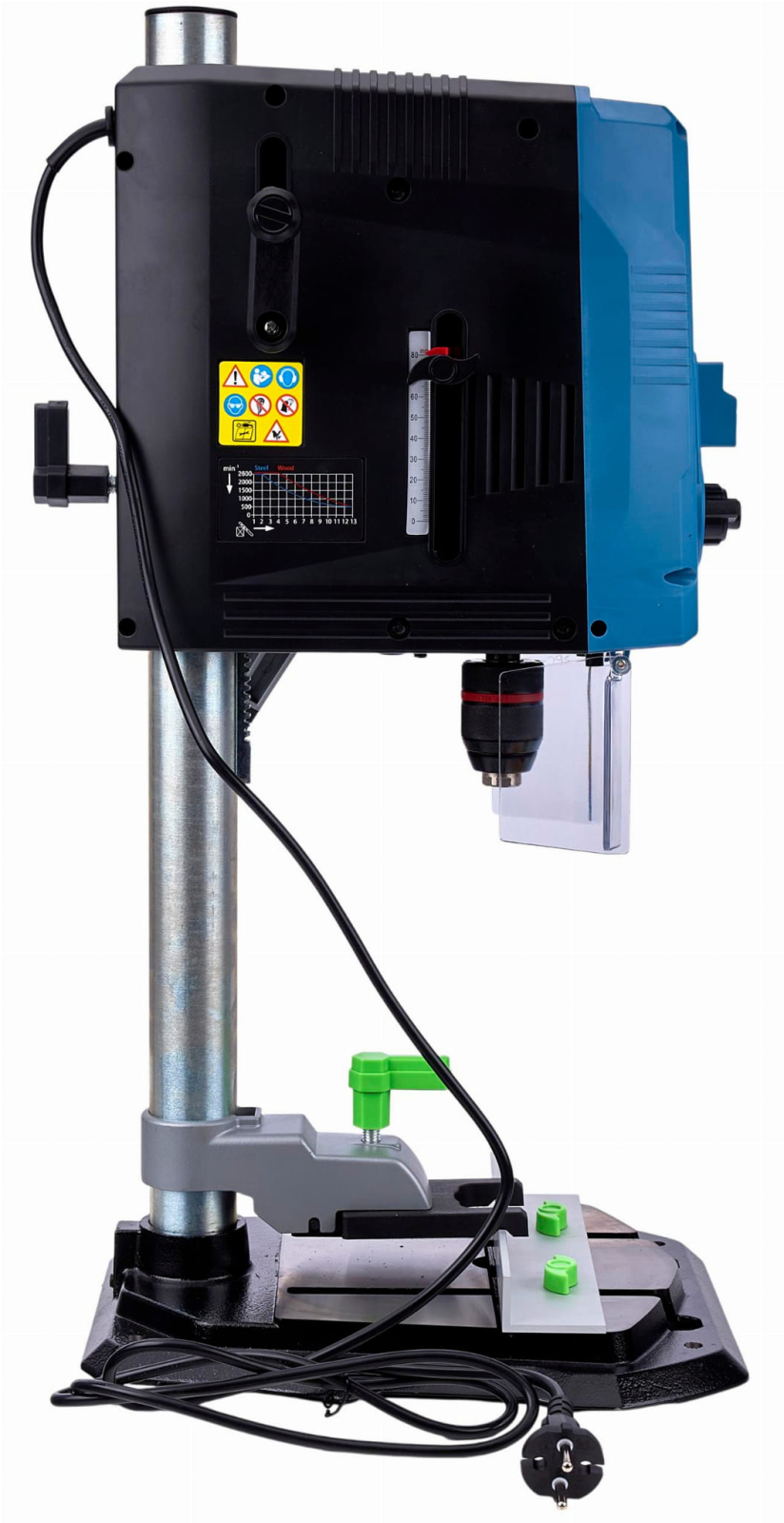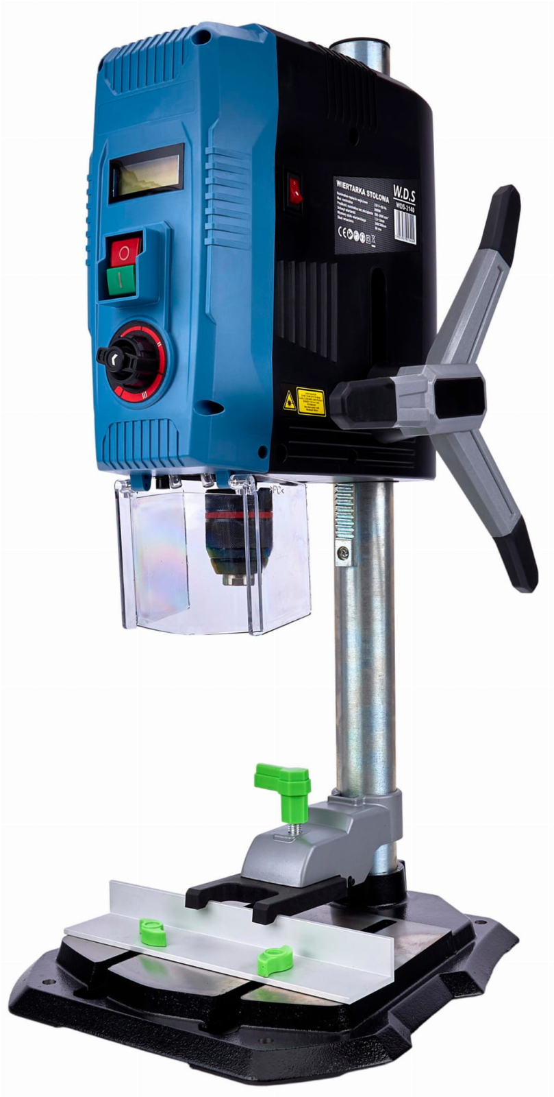 Descriere Mașină de găurit de banc de 2000 W, 13 mm, afișaj WDS2140 Despre produs Mașina de găurit cu coloană KRAFT&DELE de 2000 W cu laser cu linii în cruce și iluminare de fundal cu LED este o unealtă indispensabilă în orice atelier. Această bormașină puternică și ergonomică este ideală pentru uz casnic, în construcții și în atelier. Este concepută pentru găurirea oțelului și a lemnului. Puterea sa mare și viteza de rotație complet reglabilă, precum și precizia extraordinară, vă permit să găuriți foarte precis în orice tip de material. Controlul vitezei în intervalul 500-2600 rpm vă permite să reglați perfect precizia de găurire. Mașina de găurit are o masă de lucru stabilă, puternică și reglabilă și o menghină de mașină. Produsul este fabricat din materiale durabile și fiabile de cea mai înaltă calitate. Burghiul este potrivit și pentru găurirea în ceramică (folosind burghiul corespunzător). Un laser care luminează cu precizie locul de foraj Mâner metalic cu autoblocare 1,5 - 13 mm. Proprietăți