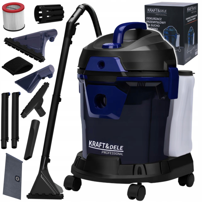 ASPIRATOR INDUSTRIAL UMED ȘI USCAT CU FUNCȚIE DE SPĂLARE 2200W MODEL KD5148 Aspiratorul industrial multifuncțional KD5148 este un dispozitiv de curățare avansat care permite atât curățarea uscată, cât și cea umedă, precum și o funcție de pulverizare a apei. Cu o putere maximă mare de 2200W și un vid de ≥21kPa, este perfect pentru îndepărtarea murdăriei din ateliere, garaje, hale de producție și camere de utilități. Designul portabil și ergonomic al dispozitivului este ideal pentru lucrul pe suprafețe mari. O priză integrată pentru scule electrice permite extragerea prafului în timp ce unealta este în funcțiune. Un sistem de filtrare în mai multe etape asigură o curățare eficientă și igienică, în timp ce funcția de suflare permite curățarea rapidă a zonelor greu accesibile. O gamă largă de accesorii permite o utilizare versatilă – de la aspirarea standard, la curățarea suprafețelor, până la curățarea precisă a locurilor greu accesibile. Modelul KD5148 este soluția perfectă pentru utilizatorii exigenți care apreciază fiabilitatea, funcționalitatea și confortul în muncă.
