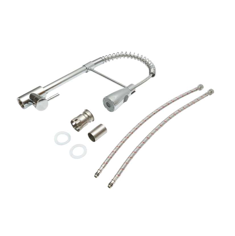 Baterie chiuveta bucatarie cu dus extractibil, pipa flexibila 2 functii, crom lucios (DISSY43)