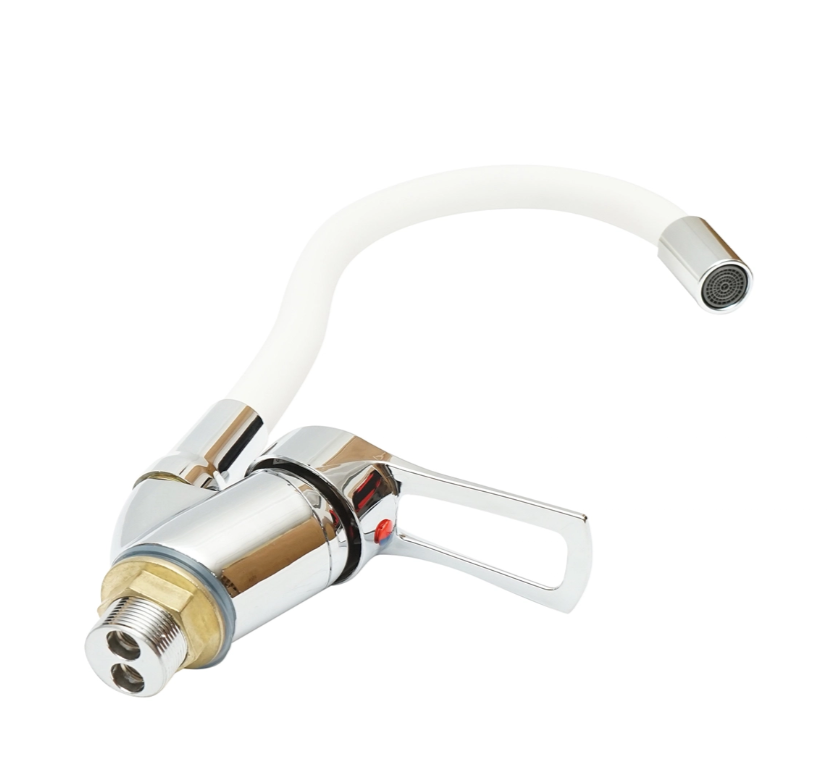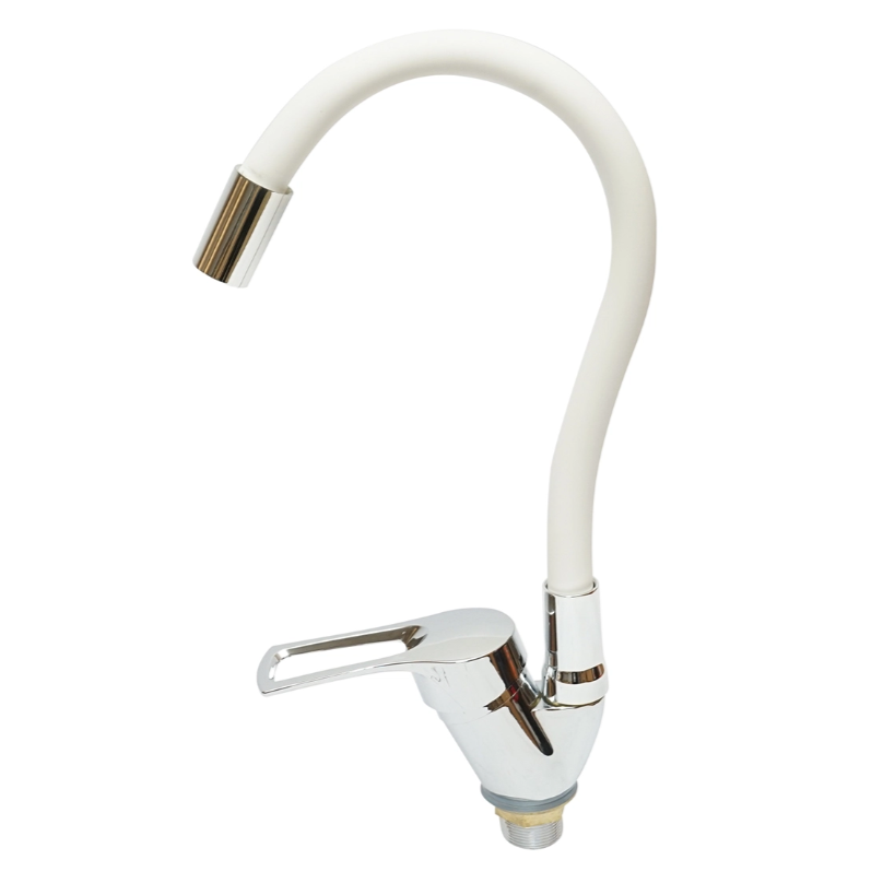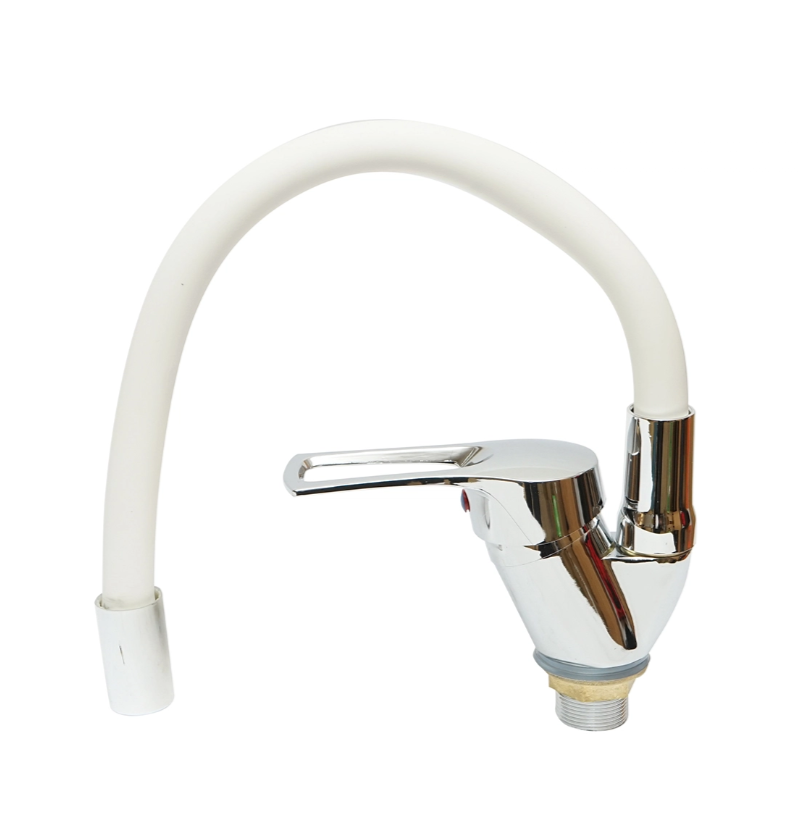 Pipă flexibilă: Gâtul bateriei este din material flexibil, ceea ce permite ajustarea direcției jetului de apă, facilitând spălarea vaselor sau a suprafețelor mai mari.