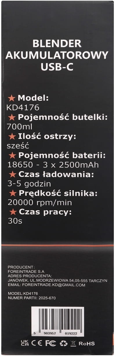 | ⚙️ Tipul și capacitatea bateriei | 3 × 2500 mAh (18500) = 7500 mAh |
