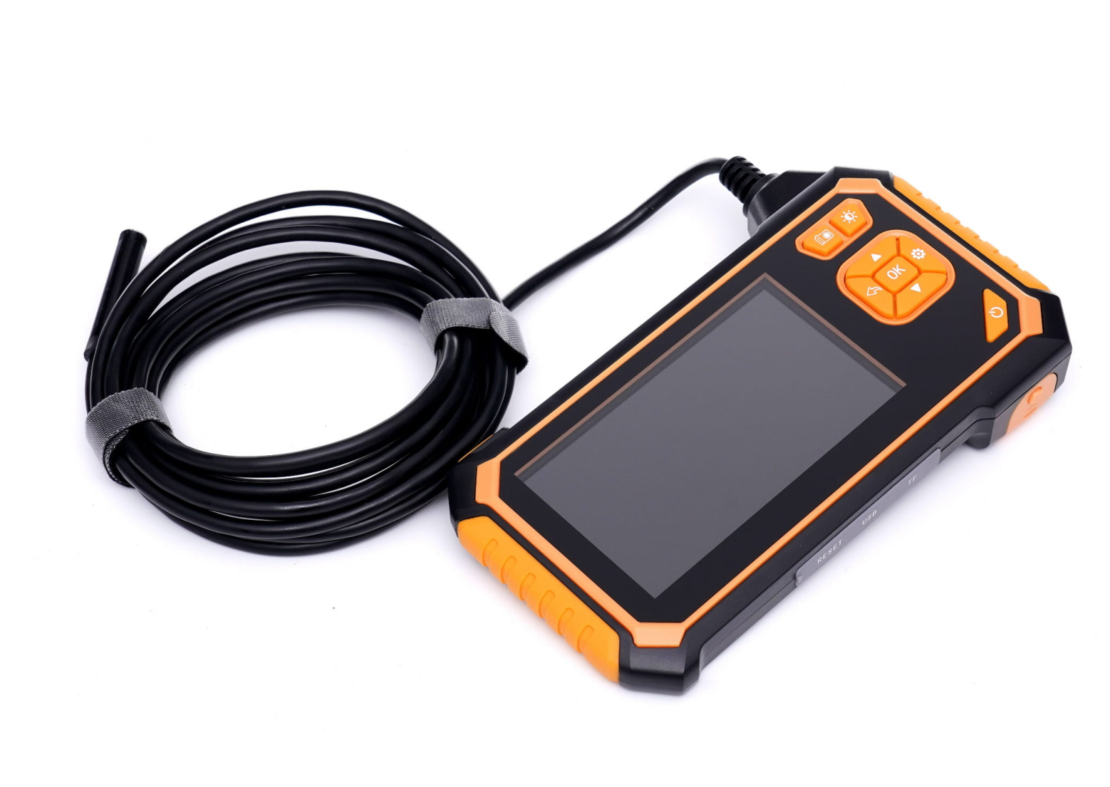 Această cameră de inspecție profesională cu afișaj propriu va îmbunătăți calitatea muncii dumneavoastră. Puteți ajunge în orice loc greu accesibil, chiar și pe întuneric. Camera funcționează complet independent de alte dispozitive, așa că nu mai aveți nevoie de un smartphone, tabletă sau computer pentru a o opera!