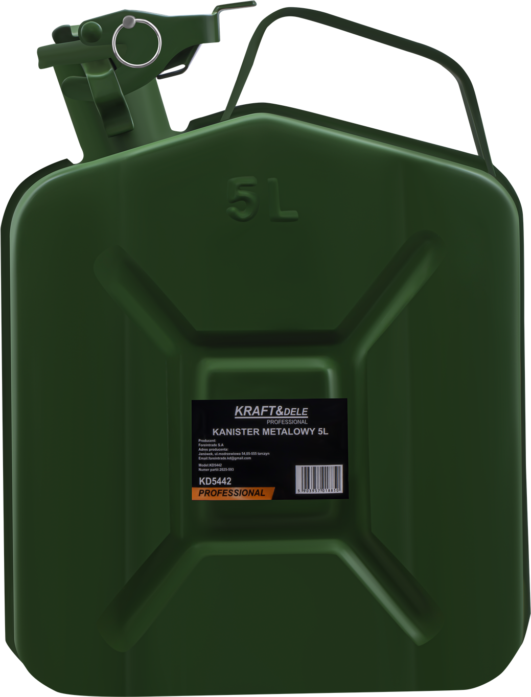 KD5442 este o canistră metalică robustă de la KRAFT&DELE, concepută pentru depozitarea și transportul în siguranță al combustibililor precum benzina și motorina. Cu o capacitate de 5 litri, este perfectă pentru utilizare în garaj, atelier sau în aer liber - oriunde este esențială o sursă fiabilă de combustibil. Modelul KD5442 este fabricat din oțel de înaltă calitate, rezistent la lovituri și deteriorări mecanice, asigurând o durată lungă de viață și fiabilitate în medii dure. Construcția sa durabilă, combinată cu un știft de blocare robust, asigură o închidere sigură și stabilitate în timpul transportului. Un mâner convenabil îl face ușor de transportat, iar culoarea sa verde permite identificarea rapidă printre alte echipamente. Canistra KD5442 este o alegere excelentă pentru pasionații de mașini, motocicliști, proprietarii de vehicule off-road și călătorii pe distanțe lungi. Versatilitatea și ușurința transportului o fac potrivită pentru o gamă largă de utilizatori, atât pentru utilizarea zilnică, cât și pentru excursii off-road sau recreative.