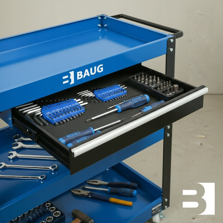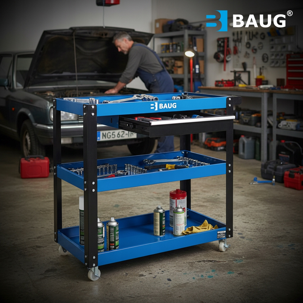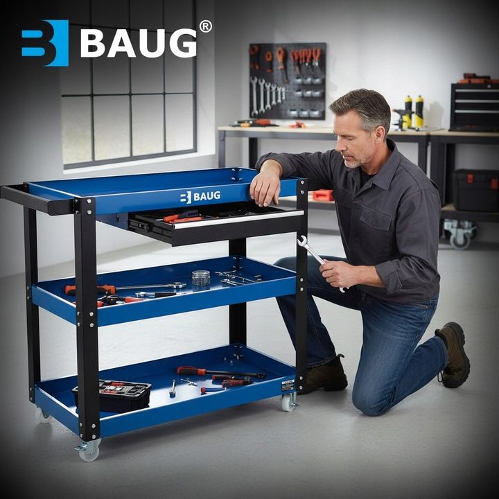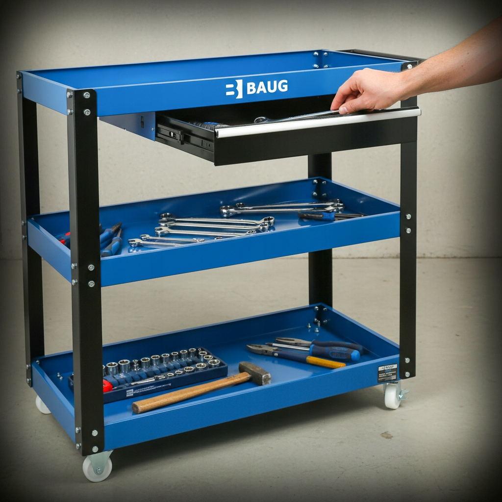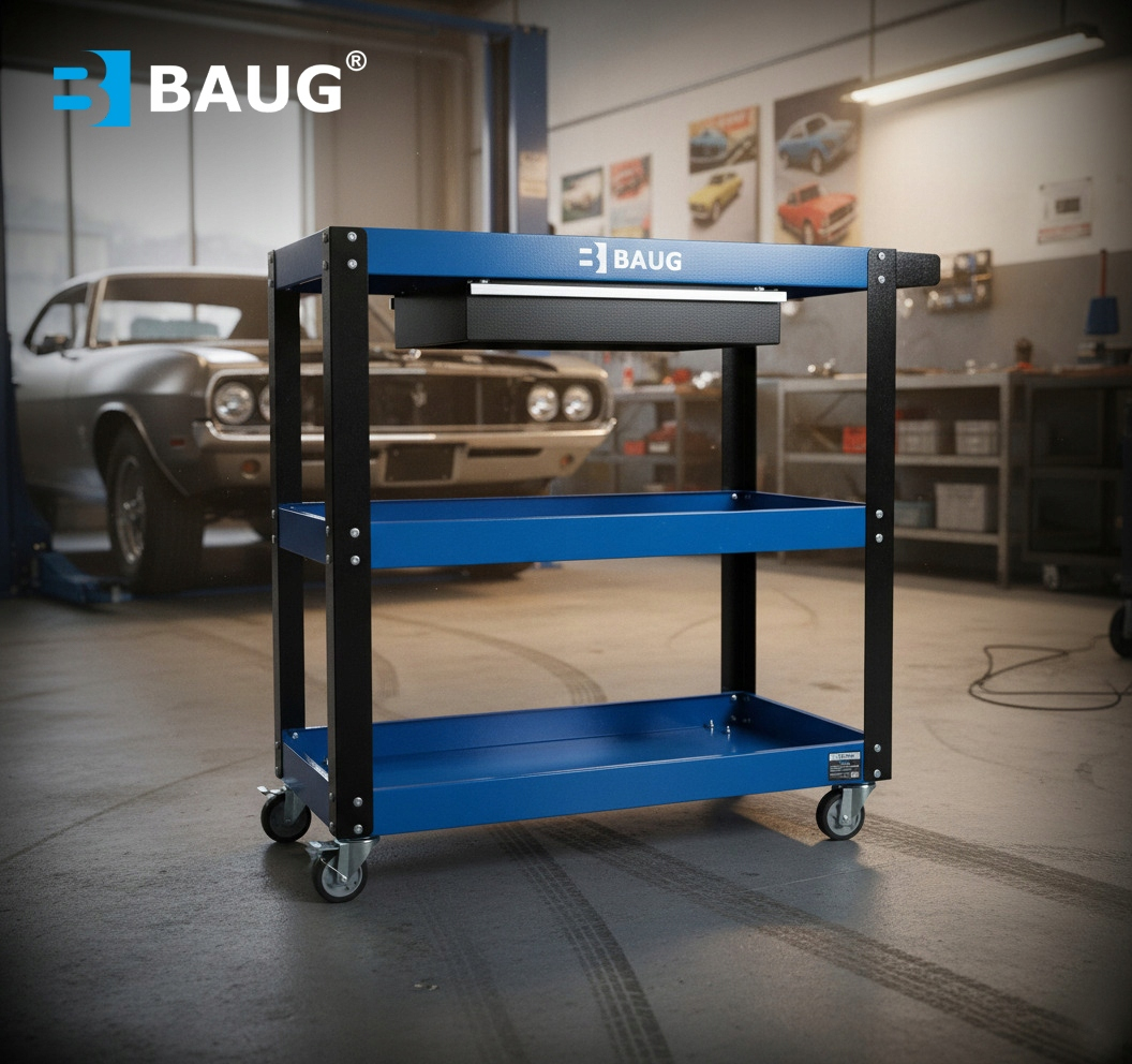 Carucior metalic scule atelier cu roti 3 rafturi (B3900)