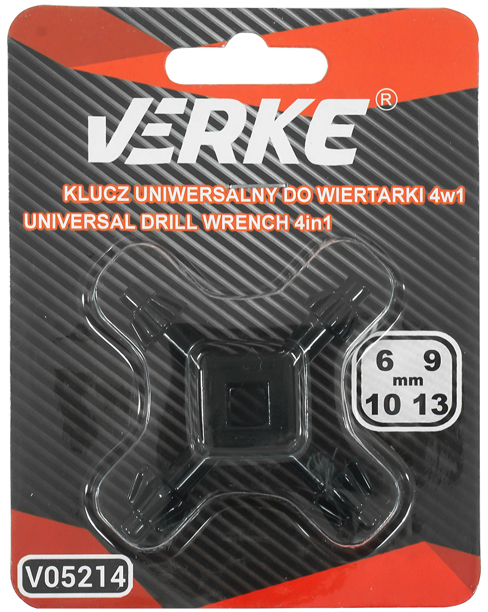 Cheie universală pentru mandrină de găurit cu patru dimensiuni de cheie - 6, 9, 10, 13 mm.