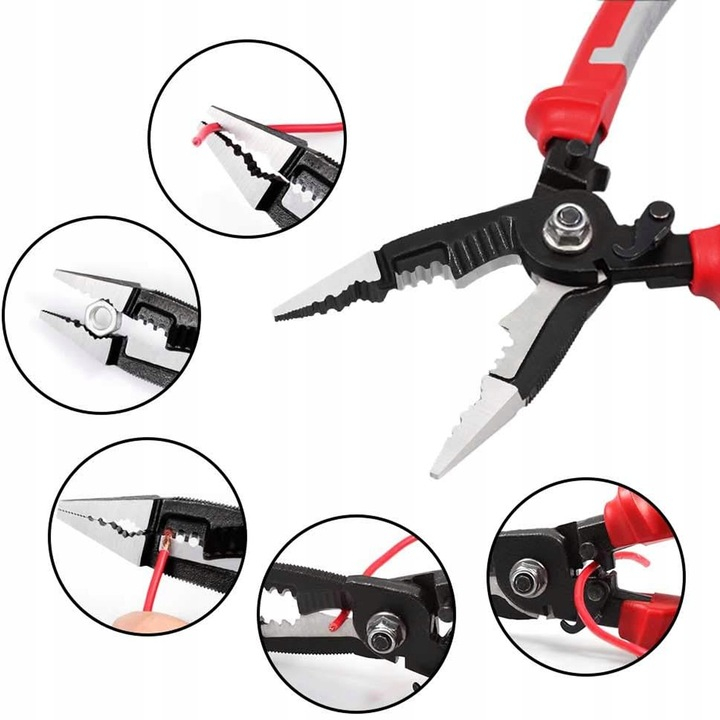 ✅ Dezizolator de fire electrice ✅ Instrument de sertizare ✅ Strângerea materialelor moi, ținerea obiectelor, stoarcerea, răsucirea, tragerea, prinderea în spații înguste ✅ Forma rotunjită permite înfășurarea ochiurilor de fixare ✅ Suprafața superioară a cleștelui este prevăzută cu o pilă
