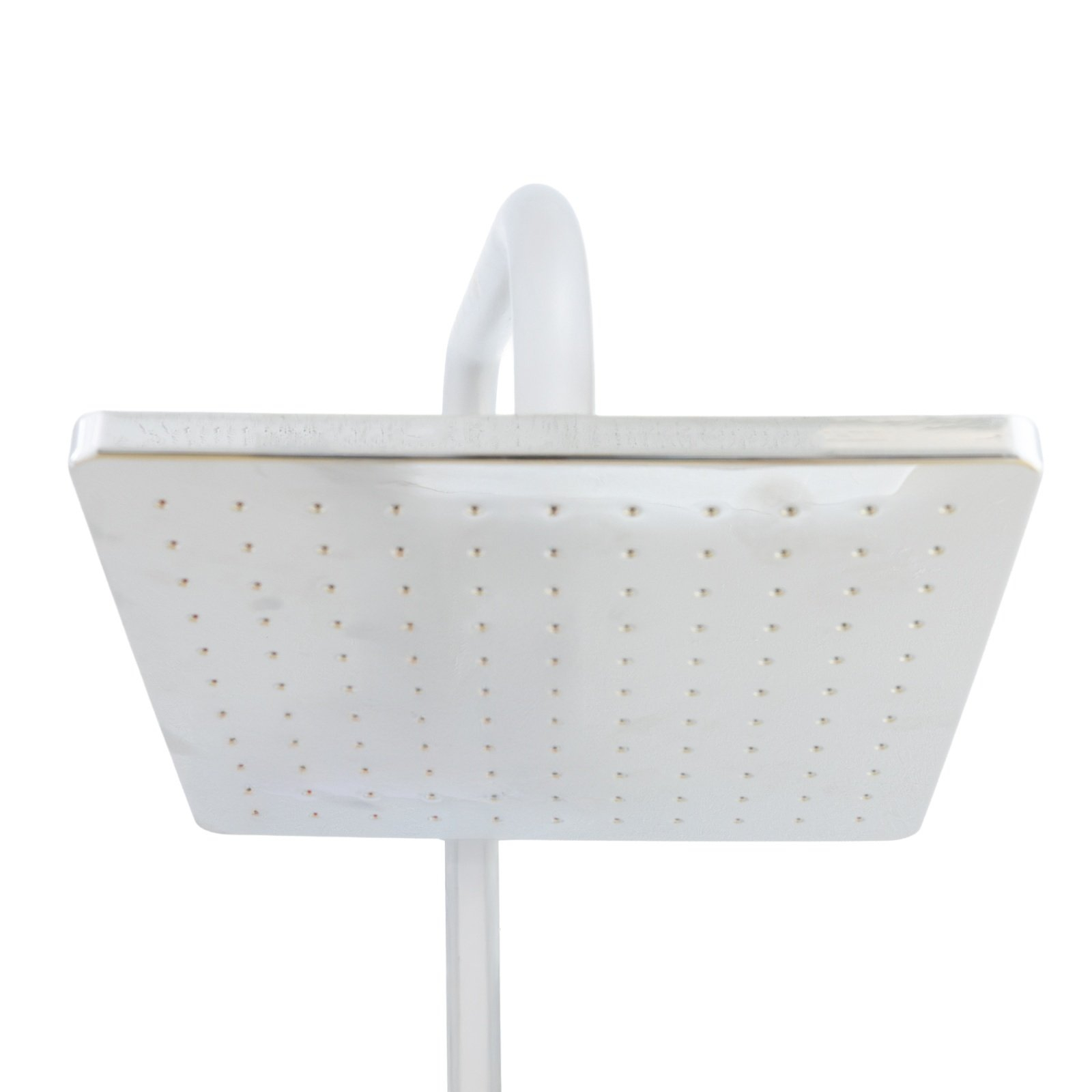 Descriere DK-003 Coloana de duș 2 în 1 cu cadru pătrat, fără baterie – MIXXUS Coloana de duș MIXXUS DK-003 este o alegere excelentă pentru cei care doresc un design modern, minimalist și funcțional în baia lor. Realizată din oțel inoxidabil premium, această coloană se remarcă prin rezistența ridicată la coroziune, durabilitate și un aspect elegant ce se păstrează impecabil în timp. Finisajul cromat lucios oferă un plus de rafinament și se integrează perfect în orice decor sanitar contemporan, oferind o notă profesională și curată. Modelul DK-003 are un cadru pătrat solid, cu o înălțime totală de 100 cm, ceea ce asigură o poziționare ergonomică a capului de duș. Bratul orizontal, de 34 cm, și distanța verticală de 10 cm până la capul de duș creează un flux de apă echilibrat, ideal pentru o experiență de duș confortabilă. Capul de duș pătrat de 22 cm oferă o pulverizare uniformă, asemănătoare unui efect de ploaie naturală, acoperind o suprafață generoasă pentru un plus de relaxare. Coloana este concepută fără baterie, ceea ce oferă libertate în alegerea modelului dorit, fiind compatibilă cu o gamă variată de baterii MIXXUS sau alte mărci standard. Instalarea este simplă, iar materialele robuste asigură stabilitate și siguranță în utilizarea zilnică. Specificații tehnice:
