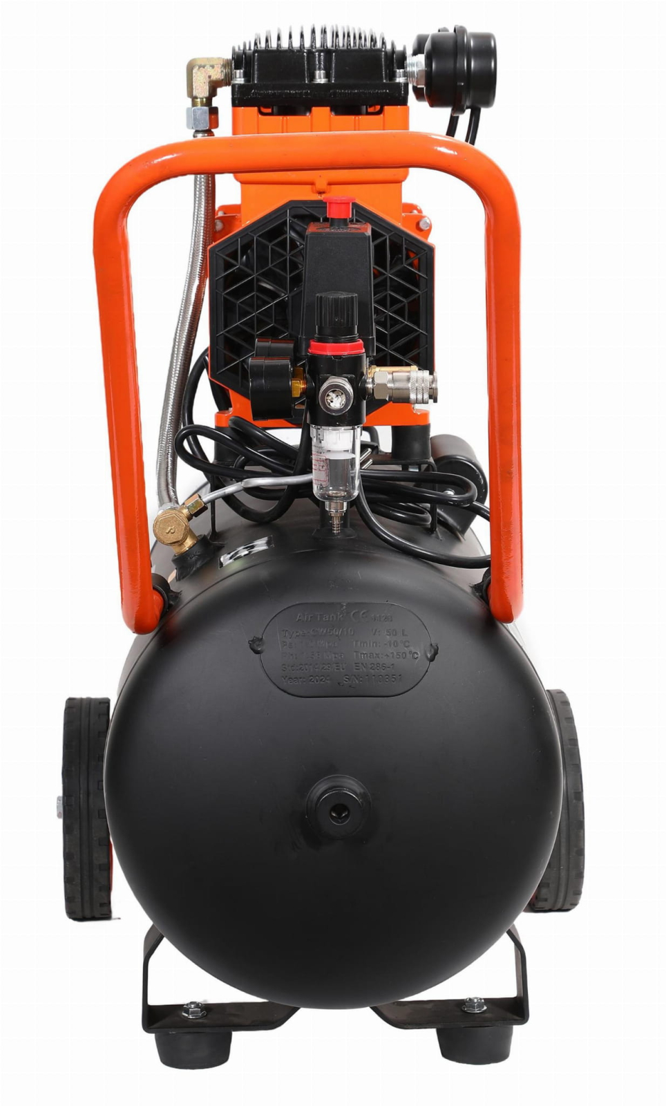 CARACTERISTICI ALE PRODUSULUI: ✅ Compresor fără ulei cu o capacitate de 50L și o putere nominală de 2200W ✅ Performanță ridicată: debit de aer 295 L/min, presiune maximă 10 bar ✅ Sistemul special de evacuare și supapele din aluminiu cresc eficiența și reduc zgomotul ✅ Arborele cotit și componentele rotative sunt fabricate din oțel special pentru stabilitate și reducerea vibrațiilor ✅ Chiulasă și componente fabricate din aliaj de fier de înaltă calitate – raport de compresie ridicat și fără scurgeri ✅ Elemente de fixare durabile pentru a preveni scurgerile de aer ✅ Piston tratat termic, bolțuri de piston ranforsate cu carbon ✅ Sistemul special de amortizare asigură o funcționare silențioasă ✅ Două manometre – pentru butelie și la ieșire ✅ Dezumidificator încorporat ✅ Roți mari pentru transport ușor ✅ Supapă de scurgere pentru turnarea ușoară a apei