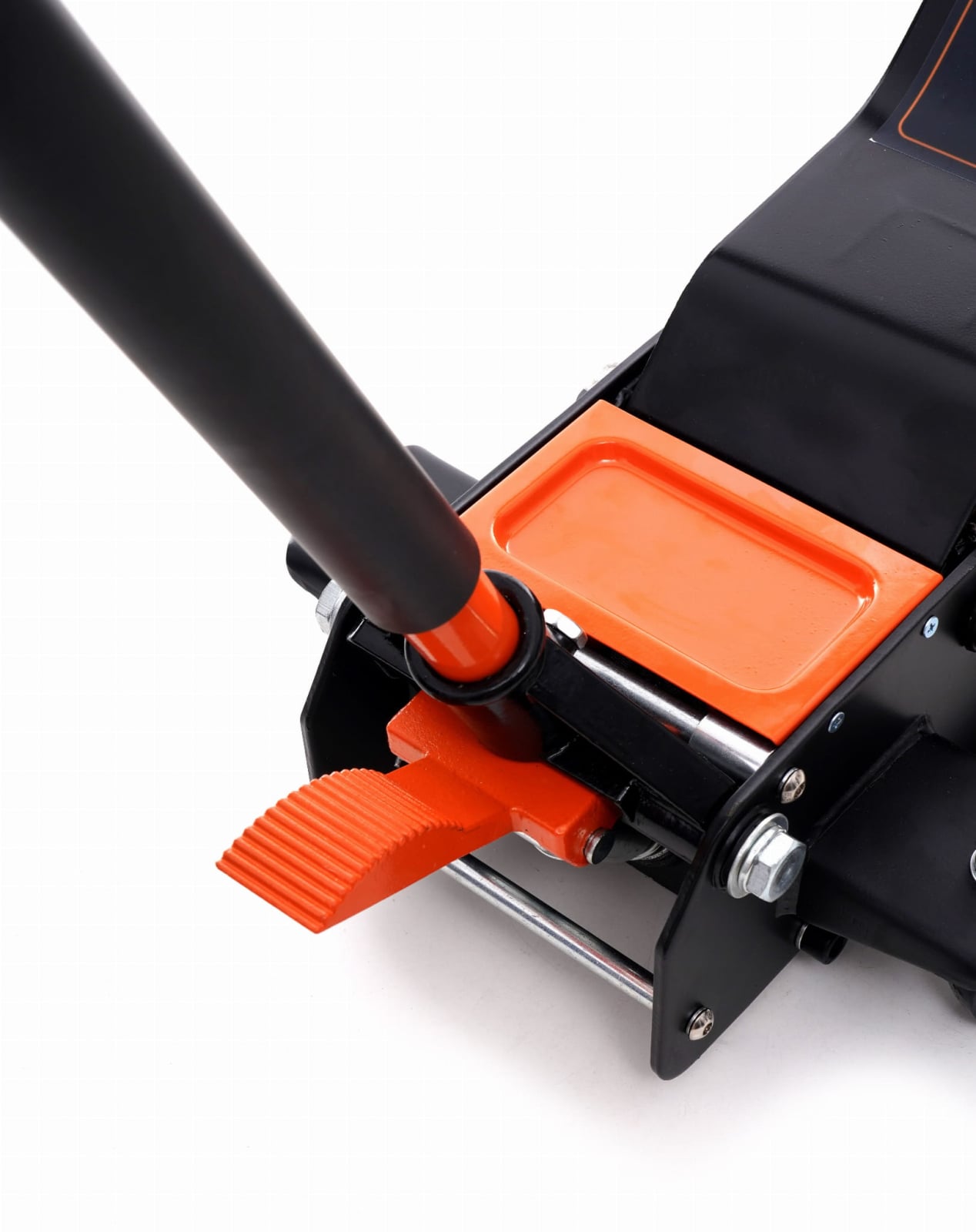 Acest cric auto practic este echipat cu roți, ceea ce îl face ușor de deplasat.