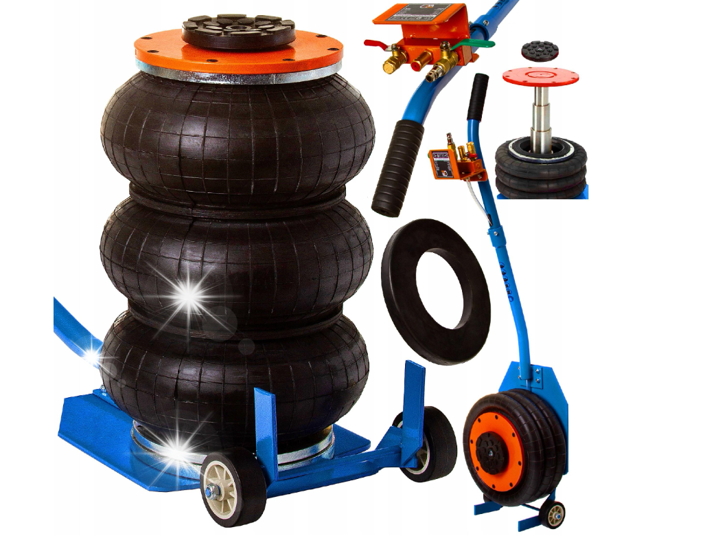 Cric pneumatic 3.5 Tone profesional cu pernă de aer pentru vulcanizare 15-40cm (14308) Ridicatorul pneumatic BLACK este un echipament profesional care poate fi folosit cu succes, printre altele: în fabrici de reparații anvelope, ateliere auto și în ferme. Acest om de zăpadă poate ridica maxim vehicule cu o greutate de până la 3,5 tone. . Cauciucul permite ridicarea în siguranță și ușurează plasarea ascensorului la locul potrivit, ceea ce accelerează semnificativ și facilitează munca. Ascensorul este alimentat de aer comprimat cu o presiune de lucru de 5 până la max 10 bar . Date tehnice: