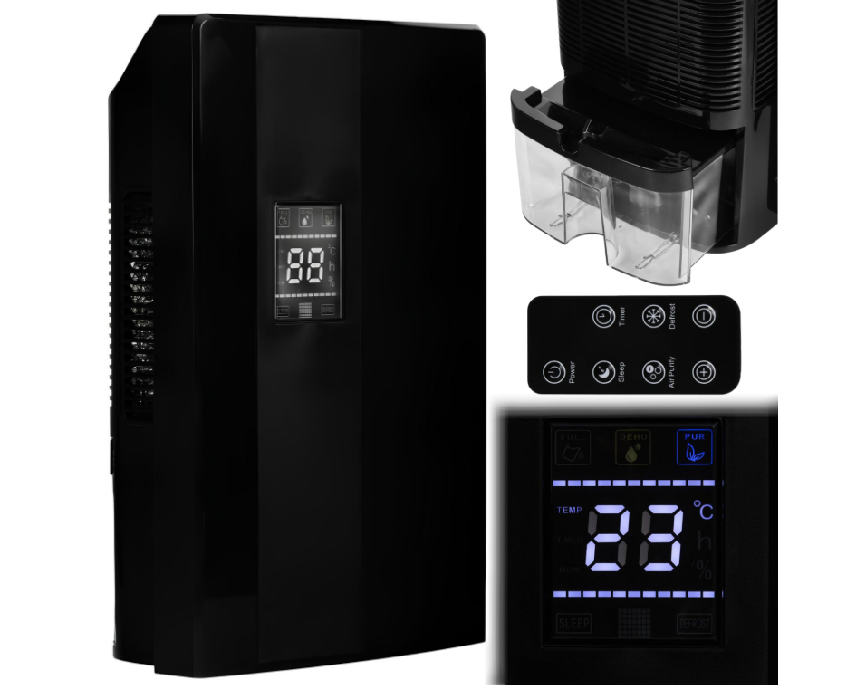 DEZUMIDIFICATOR DE AER 65W 2000 ml 270 ml/24 ore KD11746 Dezumidificatorul KD11746 folosește tehnologia Peltier (fără compresor), fiind ușor și silențios. Ideal pentru spații mici, precum birouri, băi și dormitoare, acest mini dezumidificator protejează împotriva umezelii nedorite. Tehnologie de dezumidificare: modul Peltier dublu Tehnologie de purificare: lampă ultravioletă și filtru fotocatalizator TiO2