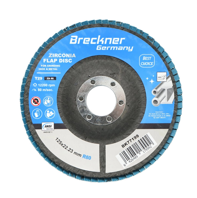 Disc lamelar abraziv cu zirconiu pentru polizat metal inox P60, 125mm DISGX18 (BK77199)