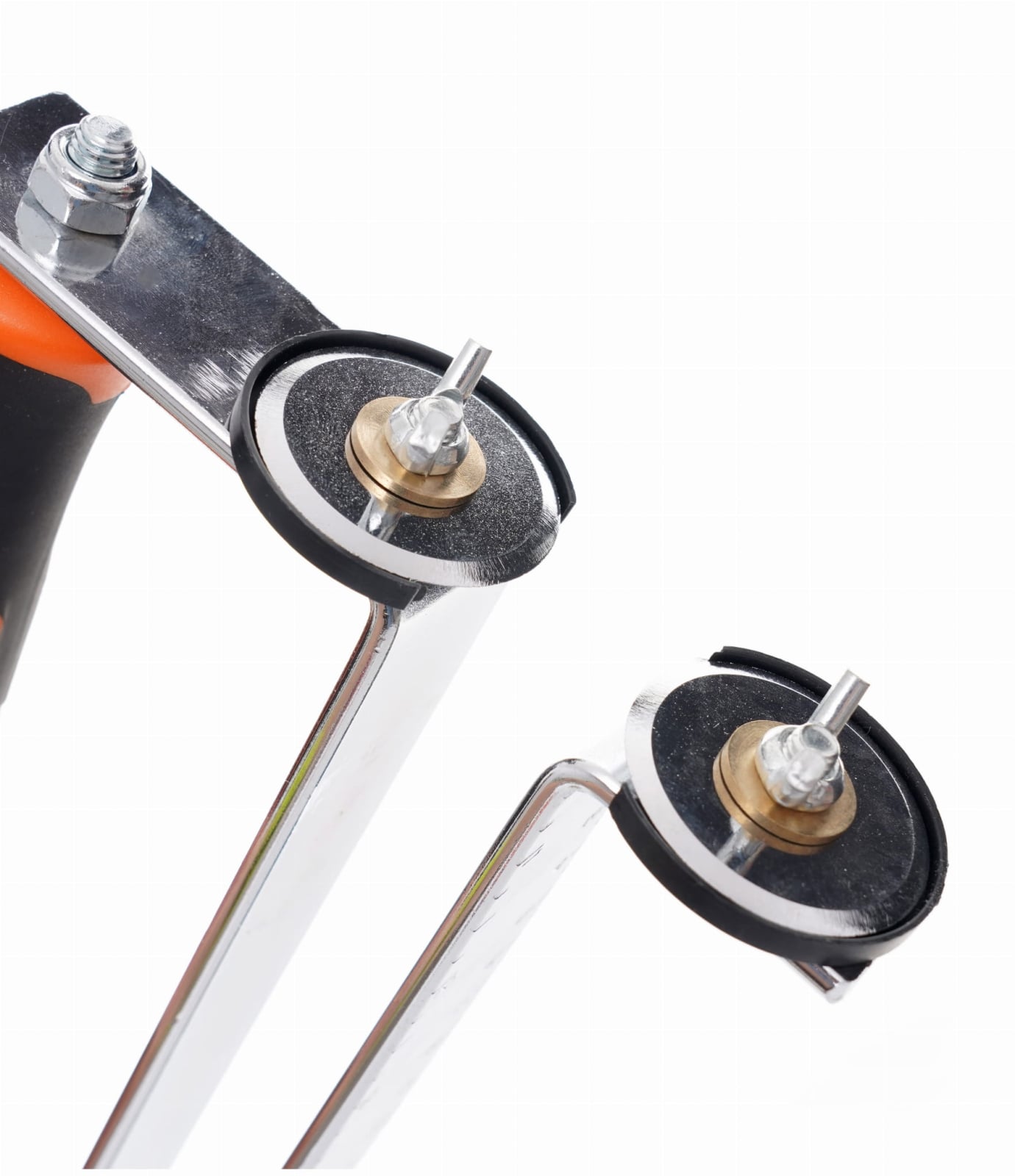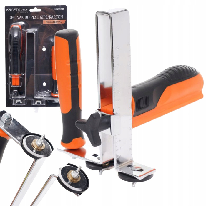 TĂIETOR DE CARTON Gips-carton KD11239 Tăietorul de gips-carton Kraft & Dele este conceput pentru tăierea simultană a ambelor părți ale gips-cartonului. Dispozitivul este fabricat din metal și plastic de înaltă calitate. Mânerul ergonomic asigură o prindere sigură și facilitează operarea. Două roți permit tăierea simultană pe ambele părți. Dispozitivul asigură o precizie excelentă de tăiere și simplifică semnificativ munca. PARAMETRI TEHNICI: