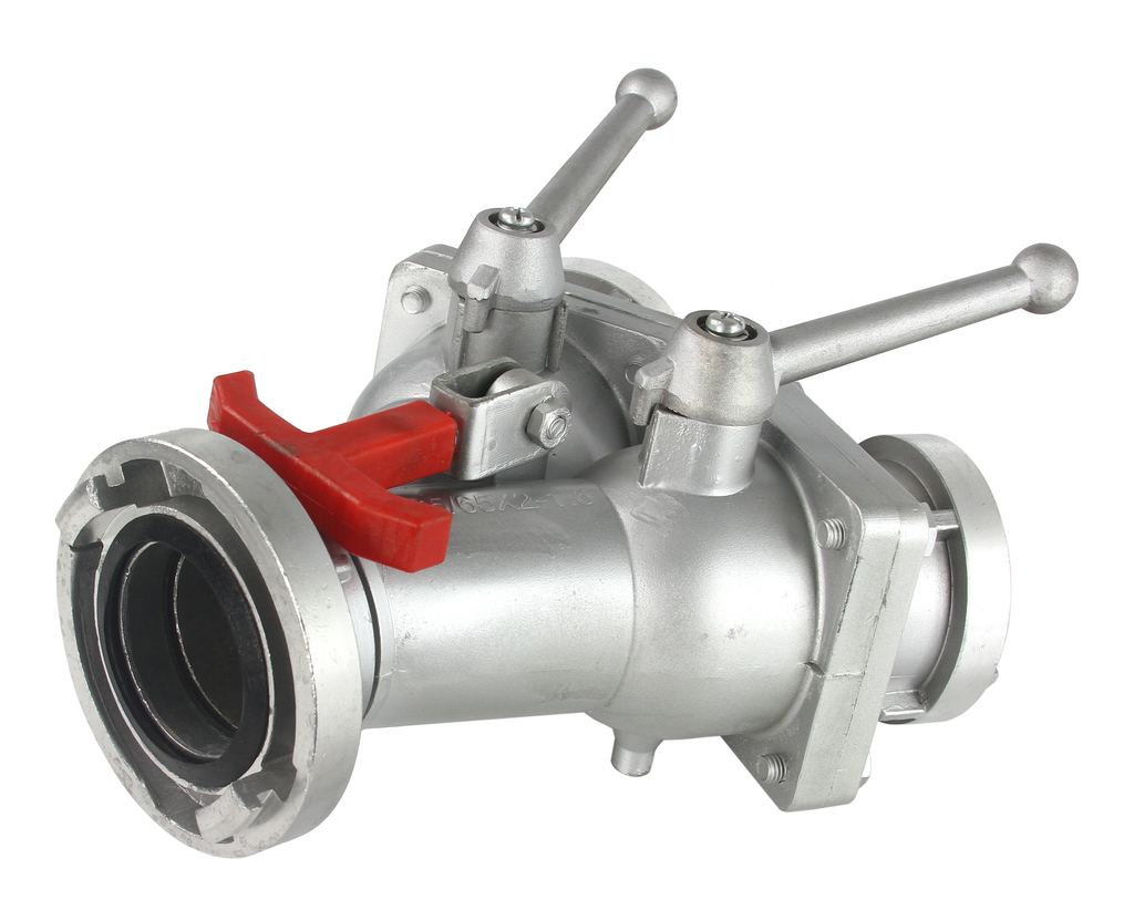 DISTRIBUITOR CU BILE DE LA 3" LA 2x2" Intrare de 75 mm, două ieșiri de 52 mm. Robinetele cu bilă sunt folosite pentru a separa debitul de apă din conducta principală. Furtun de 75 mm (3") în două linii: 52 mm (2"). Ieșirile distribuitorului sunt echipate cu robinete cu bilă independente pentru pentru a închide fluxul. La intrare și ieșiri există adaptoare pentru conectarea furtunurilor.