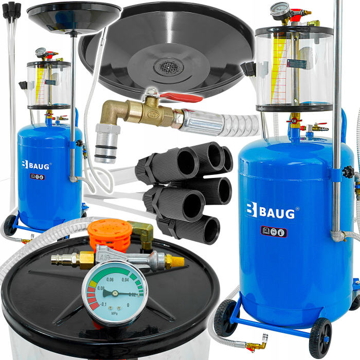 Extractorul/scurgătorul pneumatic de ulei BAUG este un dispozitiv profesional pentru drenarea asistată gravitațional a uleiului uzat din motoare, cutii de viteze și diferențiale ale tuturor tipurilor de vehicule. Acesta combină caracteristicile unui scurgător de ulei și ale unui schimbător de ulei. Este ideal pentru schimburile de ulei - permite atât golirea, cât și extragerea lubrifiantului din interiorul motorului. Duzele și sondele de aspirație suplimentare fac ca schimbările de ulei să fie rapide și fără probleme. Extractorul vine cu un set de cinci furtunuri de aspirație care vă vor simplifica semnificativ munca. Patru furtunuri flexibile și două furtunuri metalice de aspirație sunt fabricate din materiale de înaltă calitate, asigurând o etanșeitate perfectă și o capacitate excelentă de debit. Vedeți singuri cât de ușor este să utilizați acest dispozitiv. Roțile convenabile și un mâner practic facilitează mutarea dispozitivului în orice locație din atelier, iar funcția de autodrenare face ca îndepărtarea uleiului să fie ușoară și curată. DATE TEHNICE: