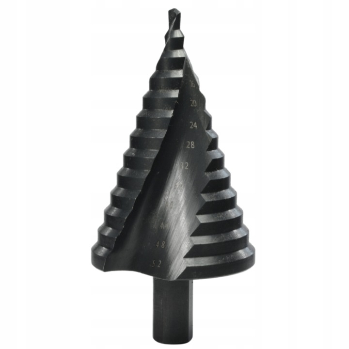 Treptat de precizie: Burghiul își schimbă treptat diametrul în trepte de 4 mm pentru versatilitate și precizie de găurire.