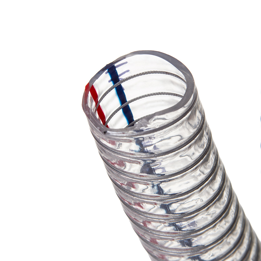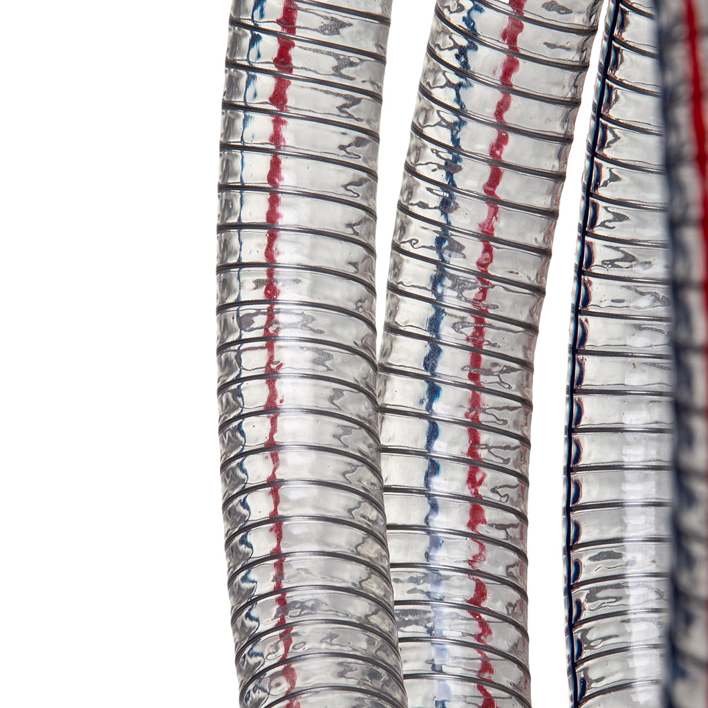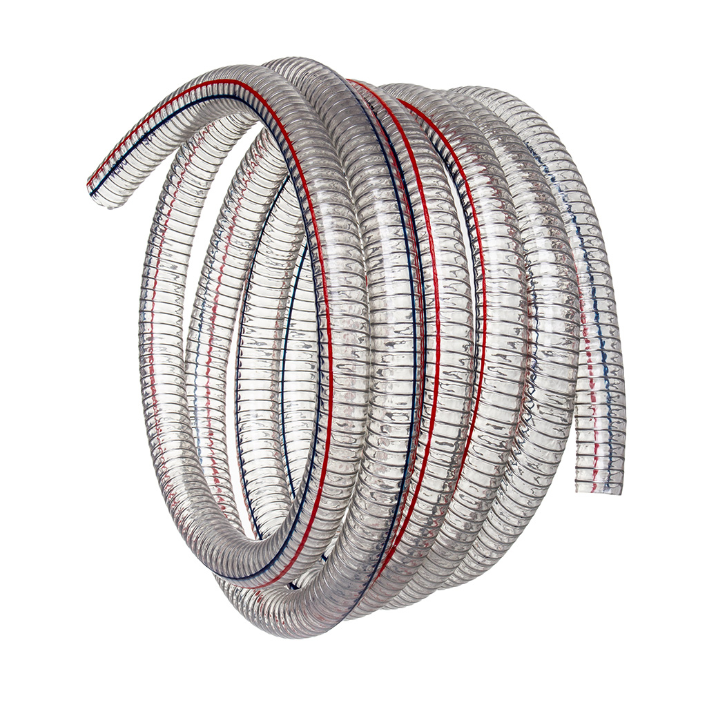 FURTUN DE ASPIRAȚIE CU SPIRALĂ DIN OȚEL 1" Furtun de aspirație și refulare extrem de durabil și flexibil, fabricat din PVC transparent, ranforsat cu o spirală din sârmă de oțel.