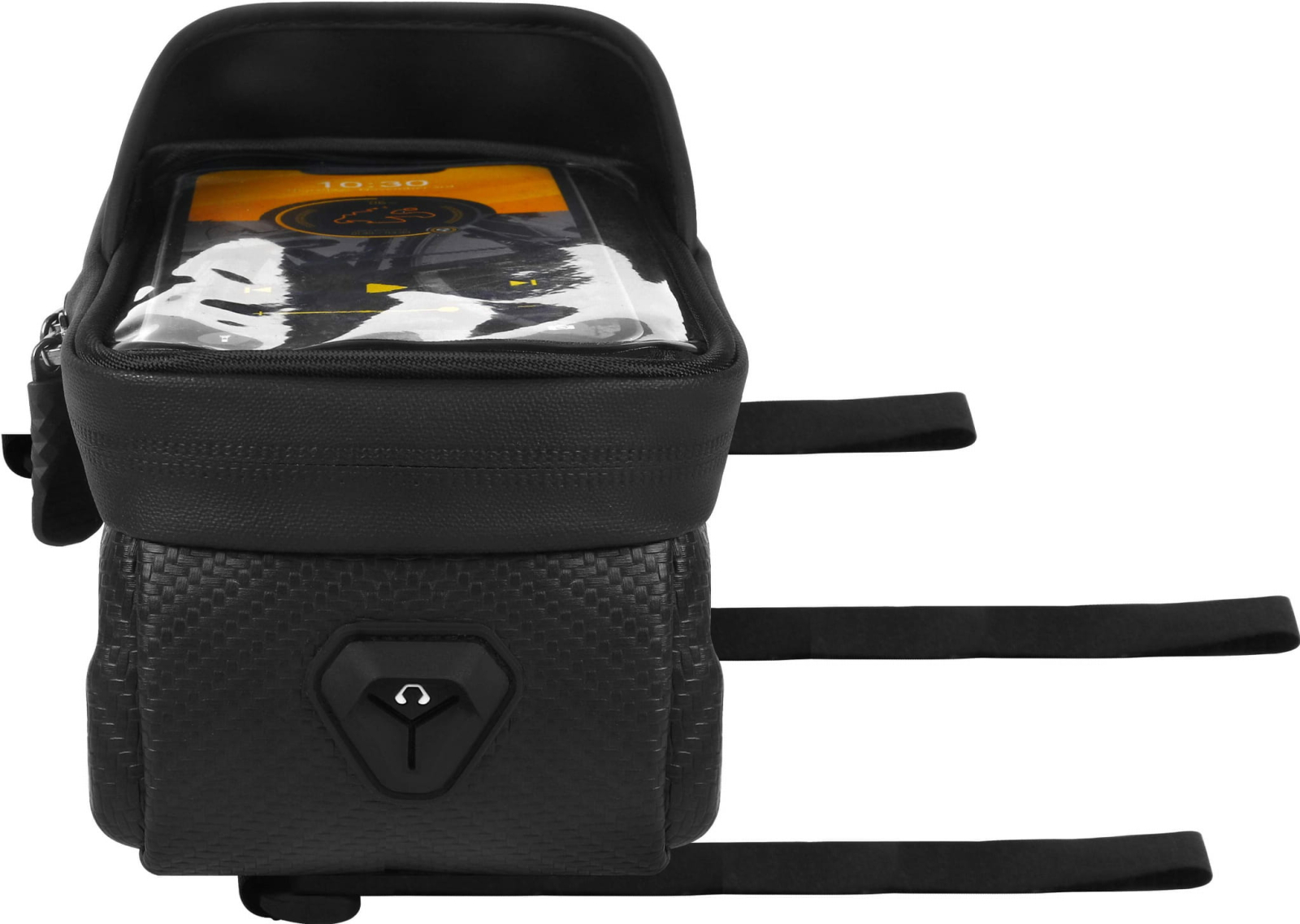 KD10886 este o geantă de bicicletă practică și impermeabilă de la KRAFT&DELE, concepută pentru montarea pe cadrul bicicletei. Această geantă depozitează convenabil obiecte esențiale în timpul mersului cu bicicleta, cum ar fi unelte de reparații, chei, portofel sau telefon. Designul său compact o face ideală atât pentru naveta zilnică, cât și pentru plimbările mai lungi cu bicicleta. Modelul KD10886 dispune de un compartiment mare cu fermoar și două dispozitive de închidere robuste. Structura ranforsată protejează conținutul de deteriorare, în timp ce materialul impermeabil protejează obiectele de umezeală. Un capac suplimentar protejează telefonul de lumina soarelui, îmbunătățind vizibilitatea ecranului. Partea frontală din silicon sensibilă la atingere permite utilizarea confortabilă a telefonului fără a-l scoate din husă. Interiorul compartimentului telefonului este căptușit cu spumă EVA, iar benzile de cauciuc suplimentare și o închidere cu velcro stabilizează smartphone-ul în timpul mersului. Geanta se atașează de cadrul bicicletei cu trei curele rezistente cu velcro.