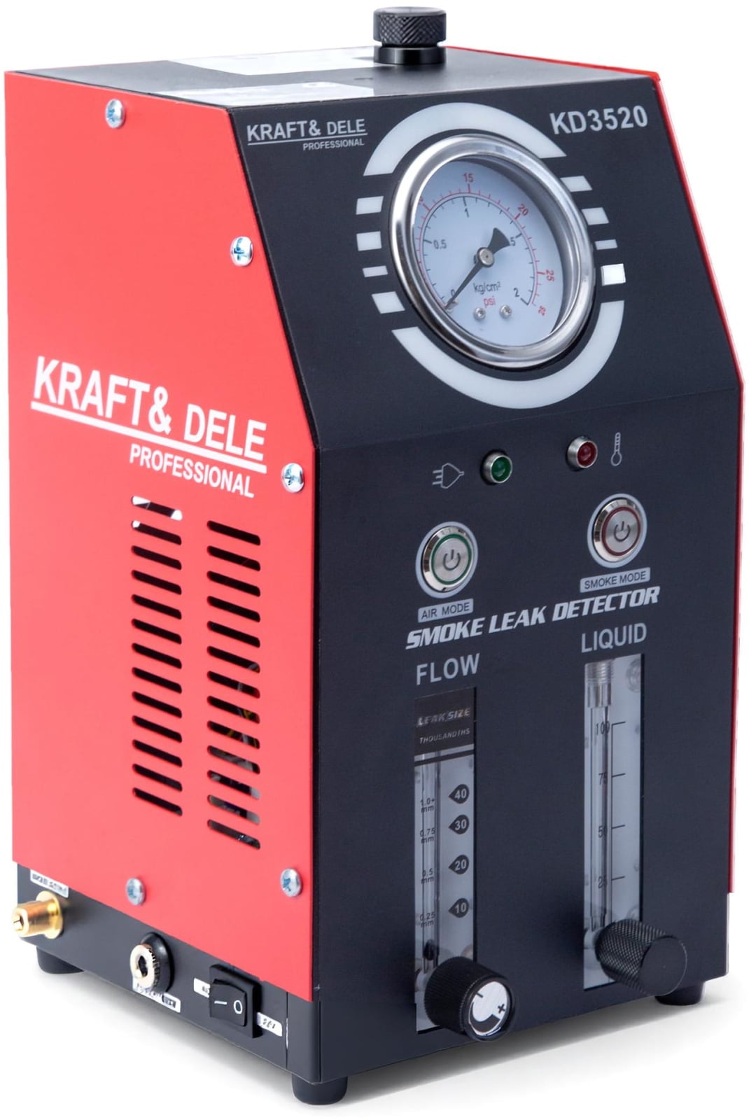 GENERATOR DE FUM PENTRU DETECTAREA SCURGERILOR KD3520 Generatorul de fum KRAFT&DELE KD3520 este un dispozitiv profesional de diagnosticare pentru detectarea scurgerilor din sistemele de conducte ale vehiculelor și din instalațiile tehnice. Acesta permite localizarea rapidă, sigură și precisă a scurgerilor în sisteme precum sistemul EVAP, conductele de admisie, evacuare, combustibil, răcire și vid. Dispozitivul este conceput pentru utilizare în autoturisme, motociclete și alte sisteme de conducte. Pompa de aer încorporată elimină necesitatea unei surse de presiune externe, iar designul său compact îl face ușor de transportat și utilizat.
