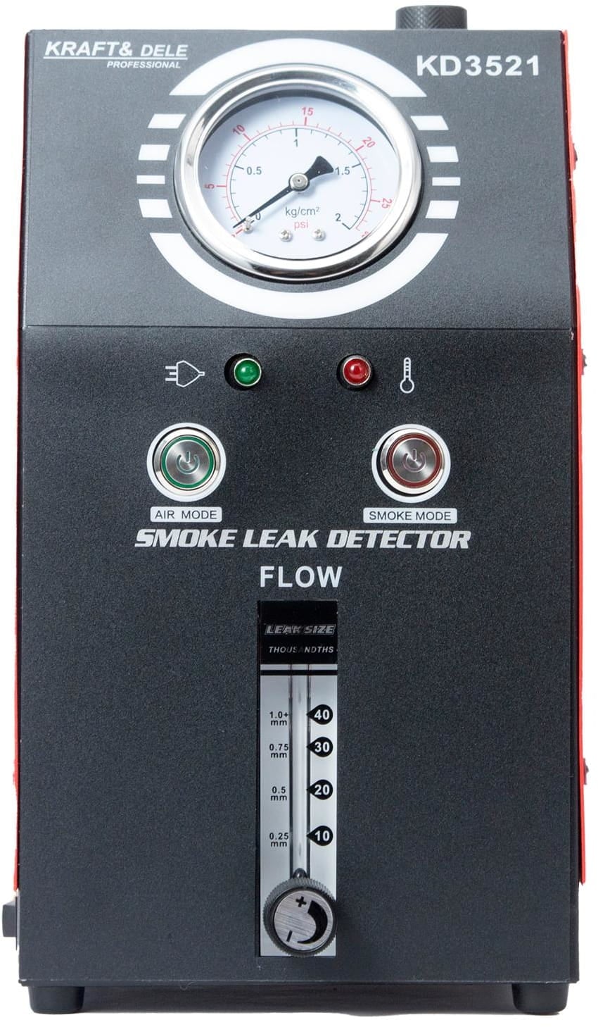 GENERATOR DE FUM PENTRU DETECTAREA SCURGERILOR KD3521 Generatorul de fum KRAFT&DELE KD3521 este un dispozitiv de diagnosticare profesional pentru detectarea scurgerilor din sistemele de conducte ale vehiculelor și din instalațiile tehnice. Acesta permite localizarea rapidă, sigură și precisă a scurgerilor în sisteme precum sistemul EVAP, conductele de admisie, evacuare, combustibil, răcire și vid. Dispozitivul este conceput pentru utilizare în autoturisme, motociclete și alte sisteme de conducte. Pompa de aer încorporată elimină necesitatea unei surse de presiune externe, iar designul său compact îl face ușor de transportat și utilizat.