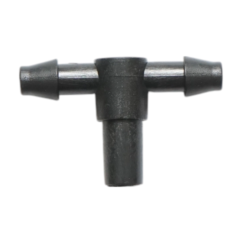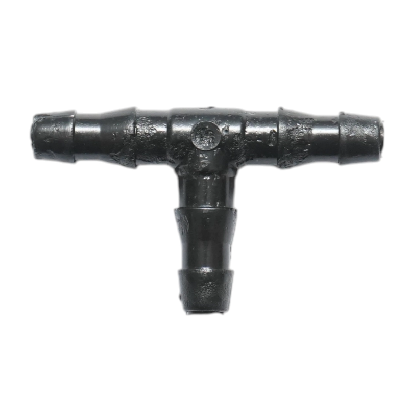 - Piesa in forma de T folosita pentru a ramifica furtunul de 1/4” in doua directii, avand unul dintre capete cu diametru diferit sau filet interior pentru montarea unei duze. Se foloseste pentru a integra o duza in linie, direct pe traseul principal al furtunului.