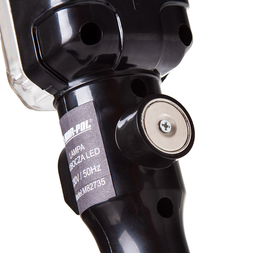 Lampă de atelier CHANNEL cu 25 LED-uri, magnet cu cârlig, 230V Lampă LED fiabilă, alimentată de la rețeaua de 230V - de neînlocuit în ateliere, centre de service și garaje DIY. Echipată cu un suport magnetic puternic, care permite atașarea lămpii pe suprafețe metalice. Echipată cu un cârlig practic și util pentru agățarea lămpii în locul ales, rotindu-se la 360 de grade. Echipat cu un cablu de alimentare lung, de aproximativ 9 metri. Cablul lung permite o utilizare ușoară departe de o sursă de alimentare. Universal. lampă pentru utilizare într-un atelier, garaj sau subsol. DATE TEHNICE: