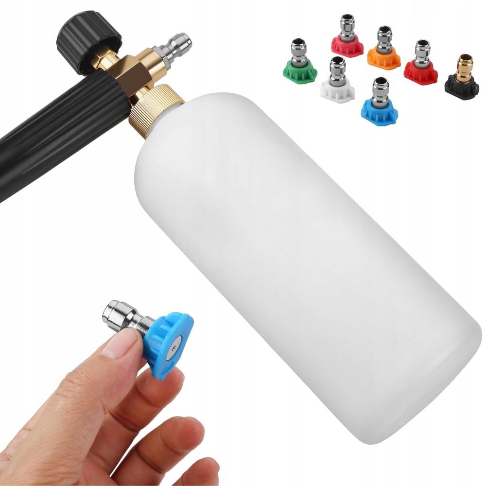 CARACTERISTICI ALE PRODUSULUI: ✅ Recipient de 1 litru care permite funcționare pe termen lung fără a adăuga agent de curățare ✅ Set de 7 duze pentru diverse aplicații ✅ Buton de reglare a debitului și densității spumei ✅ Materiale de înaltă calitate, rezistente la detergenți ✅ Asamblare și dezasamblare ușoară pentru mașinile de spălat cu presiune