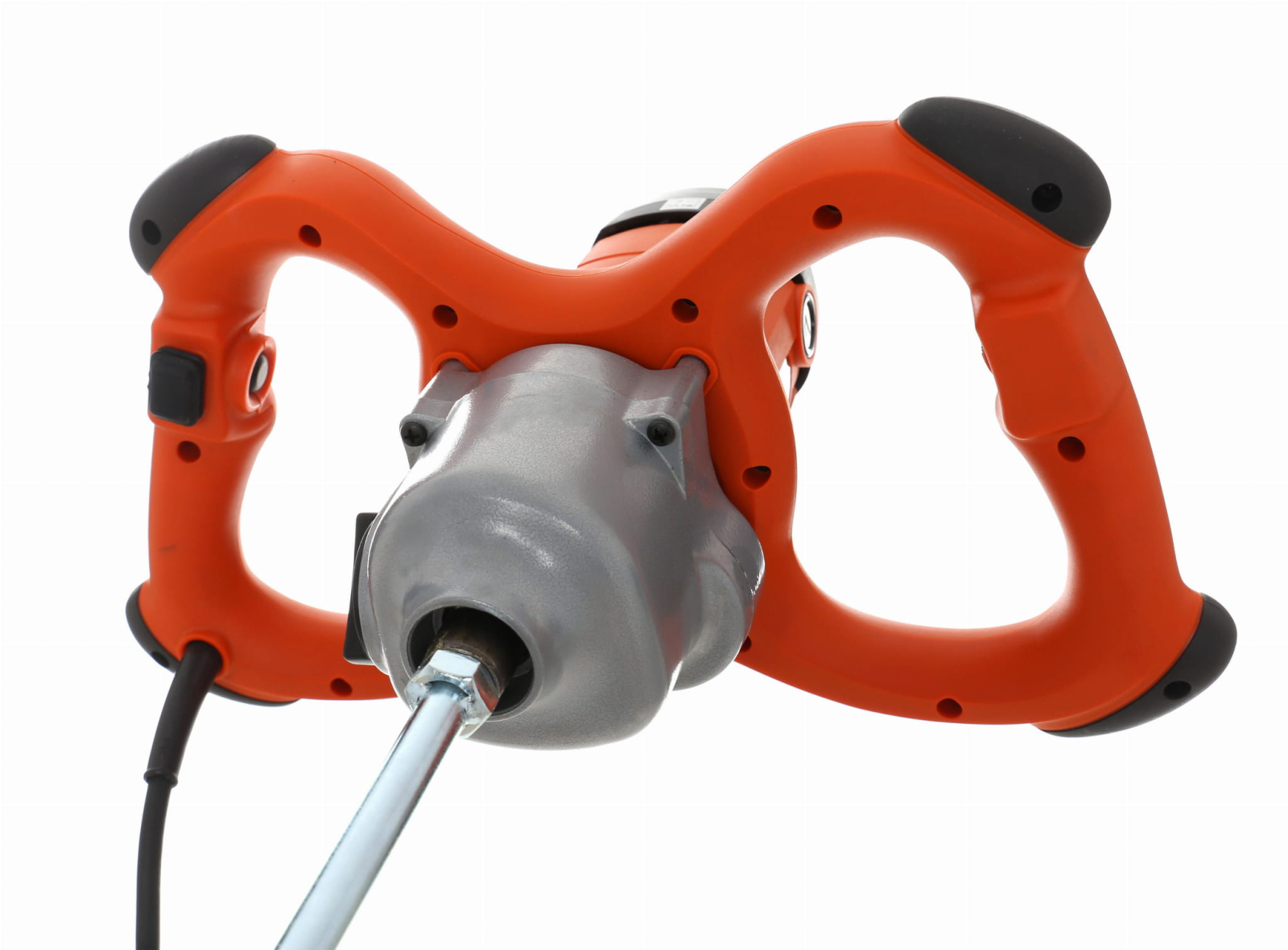 MIXER ELECTRIC 2800W. Mixerul electric este ideal pentru amestecarea vopselelor, adezivilor, ipsosului, mortarelor de ipsos, mortarelor de var, mortarelor de ciment, rășinilor epoxidice, substanțelor chimice neinflamabile etc. Dacă planificați lucrări de renovare sau construcție, un mixer este un echipament obligatoriu. Mixerul este montat folosind un filet puternic cu dimensiunea standard M14, ceea ce face ca înlocuirea rapidă să fie o procedură simplă și rapidă la această mașină, iar achiziționarea de mixere suplimentare nu este o problemă, deoarece este un sistem de montare popular și ieftin. Un avantaj clar al acestui mixer este reprezentat de o turnare puternică, dar ușoară, a capului, care disipează eficient excesul de căldură generat în cutia de viteze. Capul rotativ este susținut de rulmenți ecranați, asigurând o funcționare îndelungată și fără probleme a mixerului și un transfer precis al vitezei de rotație către paletele mixerului. În cazul în care rulmentul se uzează, acesta poate fi ușor înlocuit. Acest mixer este echipat cu un control lin al vitezei cu 6 trepte, situat în mâner, permițându-vă să reglați viteza conform specificațiilor producătorului pentru materialul amestecat. Acest lucru face ca acest dispozitiv să fie versatil. Compoziția setului: - Mixer electric KD1742