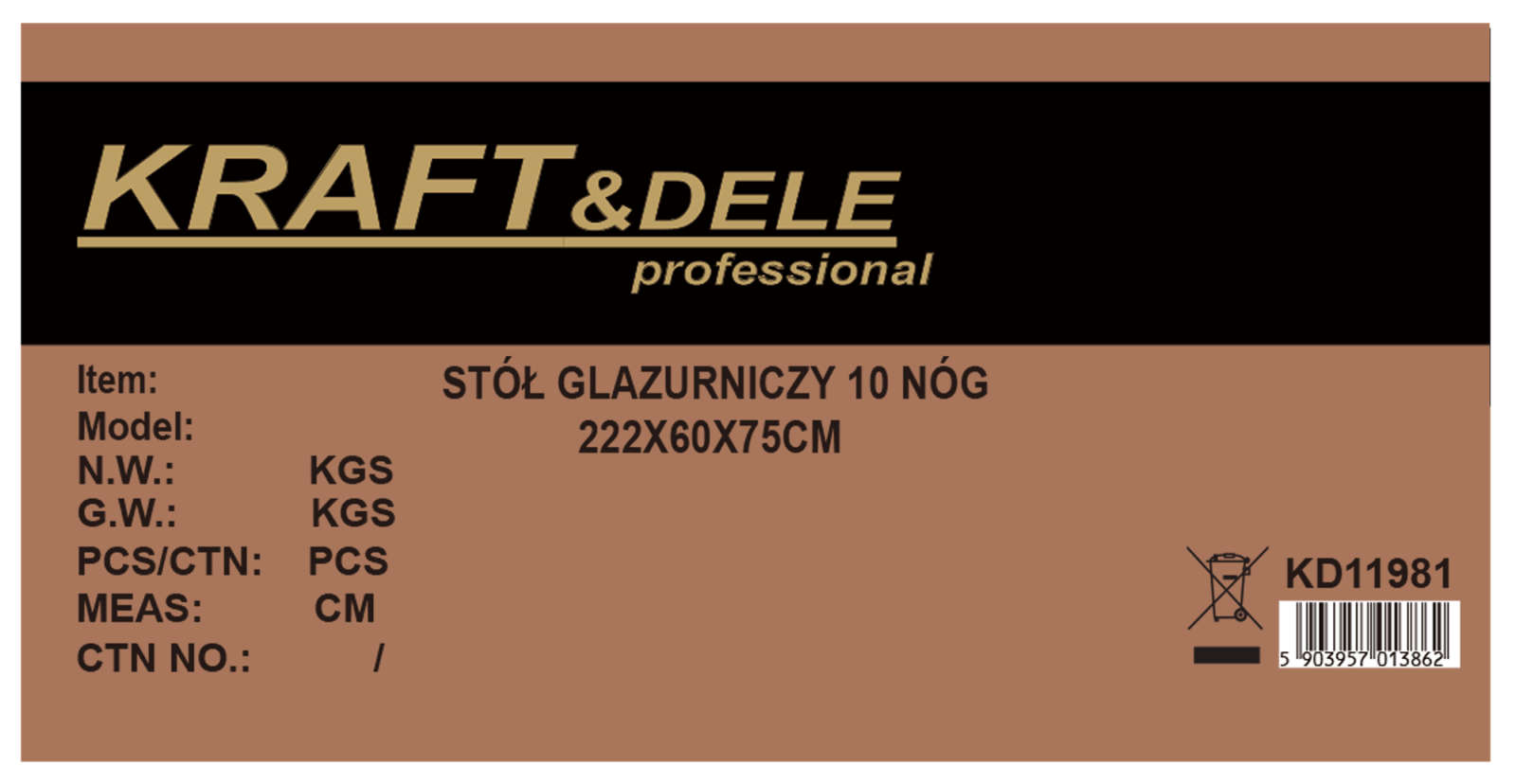 MASĂ DE FACET KD11981 222×60×75CM Masa de faianță KRAFT&DELE KD11981 este o masă profesională, excepțional de robustă, pentru lucrări de faianță. Suprafața sa mare de lucru de 222 x 60 cm și înălțimea de 75 cm asigură confort, stabilitate și libertate atunci când se lucrează cu plăci mari. Structura mesei este fabricată din aluminiu și plastic durabil , asigurând ușurință și durabilitate excepțională. Masa este echipată cu 10 picioare stabile , care permit utilizarea în siguranță chiar și sub sarcini mari. Cu o capacitate de încărcare de până la 1000 kg , KD11981 este perfectă pentru lucrul cu materiale grele. Un sistem de pliere rapid și ușor permite pregătirea convenabilă a spațiului de lucru, iar geanta de transport inclusă facilitează transportul și depozitarea mesei.
