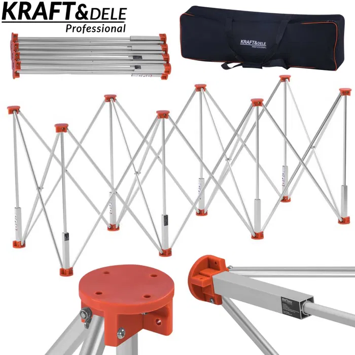 MASĂ DE FACET KD11980 170×60×75CM Masa de faianță KRAFT&DELE KD11980 este o soluție practică și robustă, concepută pentru lucrări profesionale de faianță. Suprafața sa mare de lucru de 170 x 60 cm și înălțimea de 75 cm asigură confort și comoditate în timpul lucrului. Structura mesei este fabricată din aluminiu și plastic durabil , asigurând o greutate redusă, menținând în același timp o durabilitate și o stabilitate ridicate. Opt picioare robuste permit o capacitate de încărcare de până la 800 kg , iar funcția de pliere rapidă și ușoară o face ideală atât pentru șantiere, cât și pentru ateliere. Este inclusă o geantă de transport pentru depozitare și portabilitate ușoară.