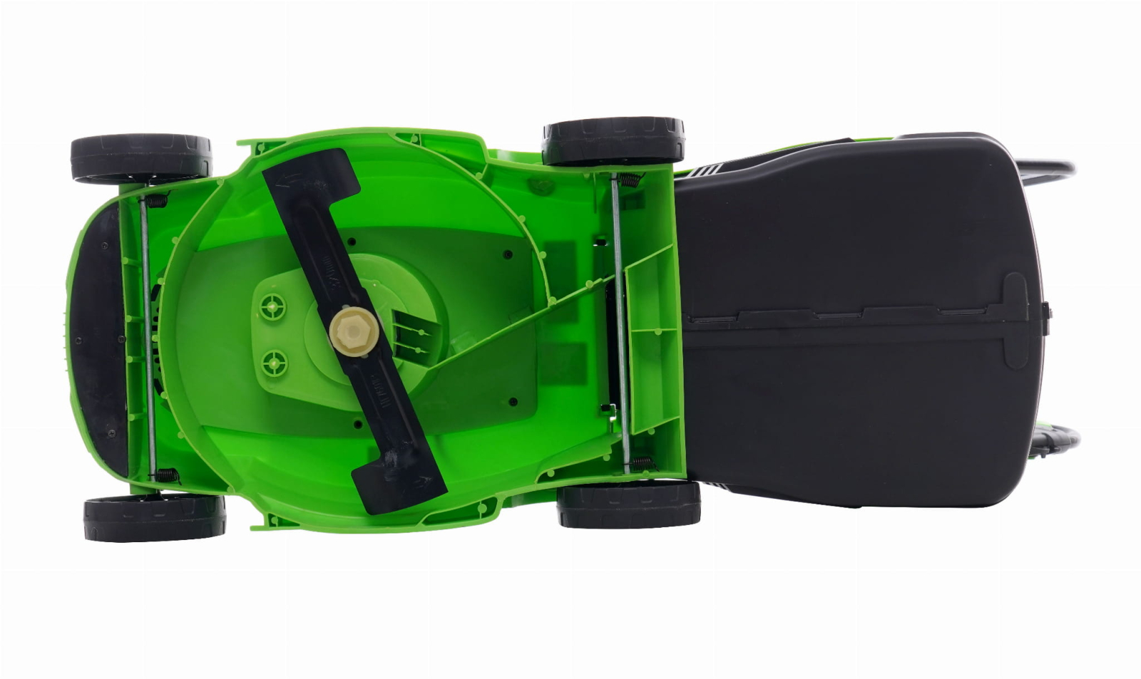 permite tăierea eficientă, rapidă și ușoară a ierbii de la 25 mm la 55 mm . Mașina de tuns iarba este echipată cu un mâner convenabil pentru reglarea înălțimii de tăiere. Carcasa dispozitivului este fabricată din plastic, ceea ce ne-a permis să creăm un dispozitiv cu o greutate de aproximativ 8 kg. Această valoare reduce semnificativ oboseala la manevrarea și operarea mașinii de tuns iarba. Dimensiunile sale compacte îi permit să ajungă în zone dificil de utilizat pentru mașinile de tuns iarba pe benzină, late și grele. Dispozitivul este echipat cu un colector de iarbă spațios, de 25 de litri. Designul colectorului a fost atent gândit, fiind fabricat din plastic și prevăzut cu un mâner de transport . Lungimea cuțitului este de 32 cm!