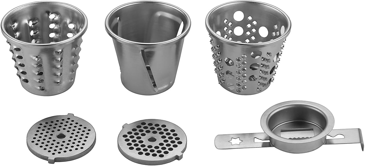 După atașarea accesoriilor corespunzătoare, râșnița devine un storcător de fructe, un feliator de legume și o formă de tăiat biscuiți. Un set complet de accesorii vă permite să adaptați cu ușurință dispozitivul la diverse sarcini din bucătărie, făcându-l indispensabil în orice bucătărie în care eficiența, precizia și versatilitatea sunt esențiale.