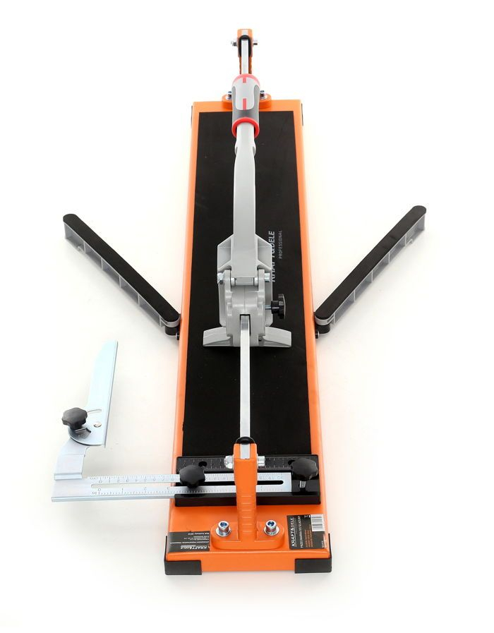 Tăietorul de plăci ceramice KD1579 de la Kraft & Dele este alcătuit dintr-o bază stabilă din tablă groasă de oțel căptușită cu un strat de micro-cauciuc tehnic, două ghidaje paralele și o unitate de tăiere care glisează de-a lungul acestora. Include o lamă circulară cu diametrul de 16 mm, fabricată din carbură special călită. Un unghi mobil atașat bazei permite tăierea plăcilor ceramice în orice unghi. Construcția sa robustă și stabilă îl face potrivit pentru renovări și lucrări de placare cu faianță, atât pentru amatori, cât și pentru profesioniști. Baza mare permite tăierea celor mai mari plăci ceramice standard.