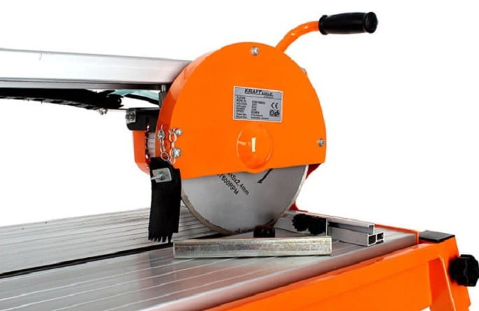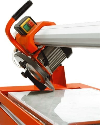 Este echipat cu o lamă diamantată și un rezervor de apă pentru răcirea lamei.