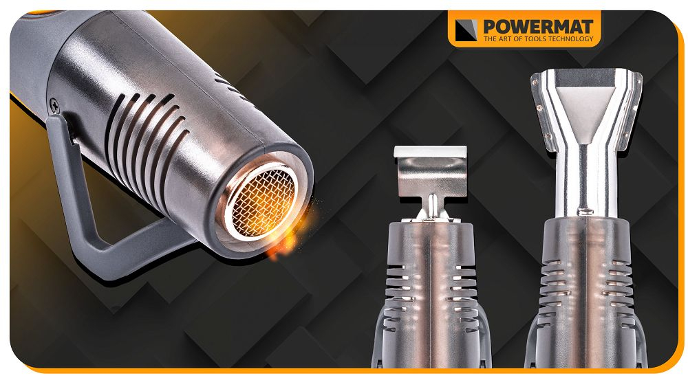 Duza de ieșire profilată concentrează fluxul de aer cald pe o suprafață mică, permițând încălzirea punctuală a autocolantelor, colțurilor și profilelor fără a afecta zonele adiacente.