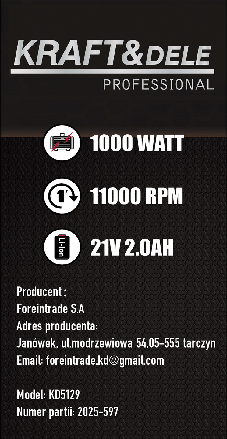 ✅ Mașină de tuns fără fir KD5129 ✅ 2 baterii de 21V 2.0Ah ✅ Încărcător ✅ Roți ✅ Cuțite metalice ✅ Fir de pescuit ✅ Disc de tăiere ✅ Cuțite din plastic ✅ Ambalaj original ✅ Manual de utilizare în poloneză