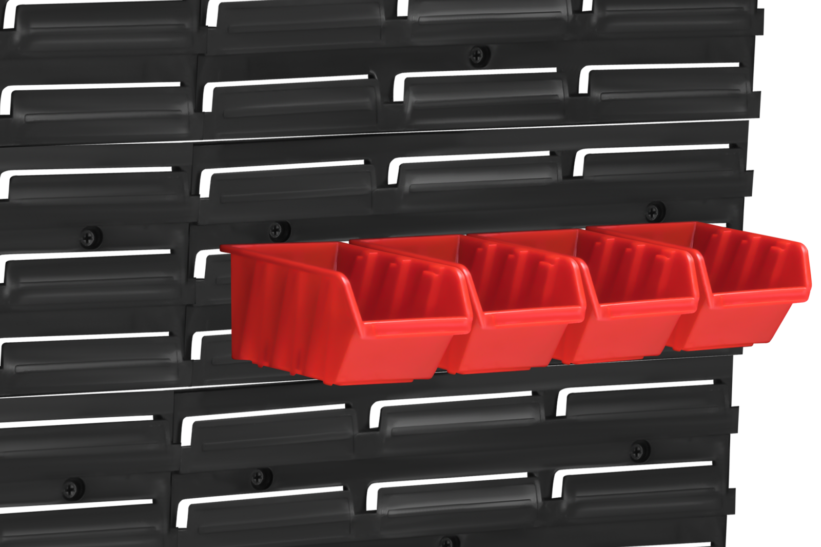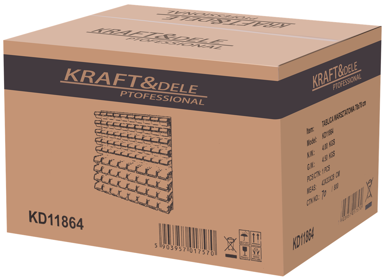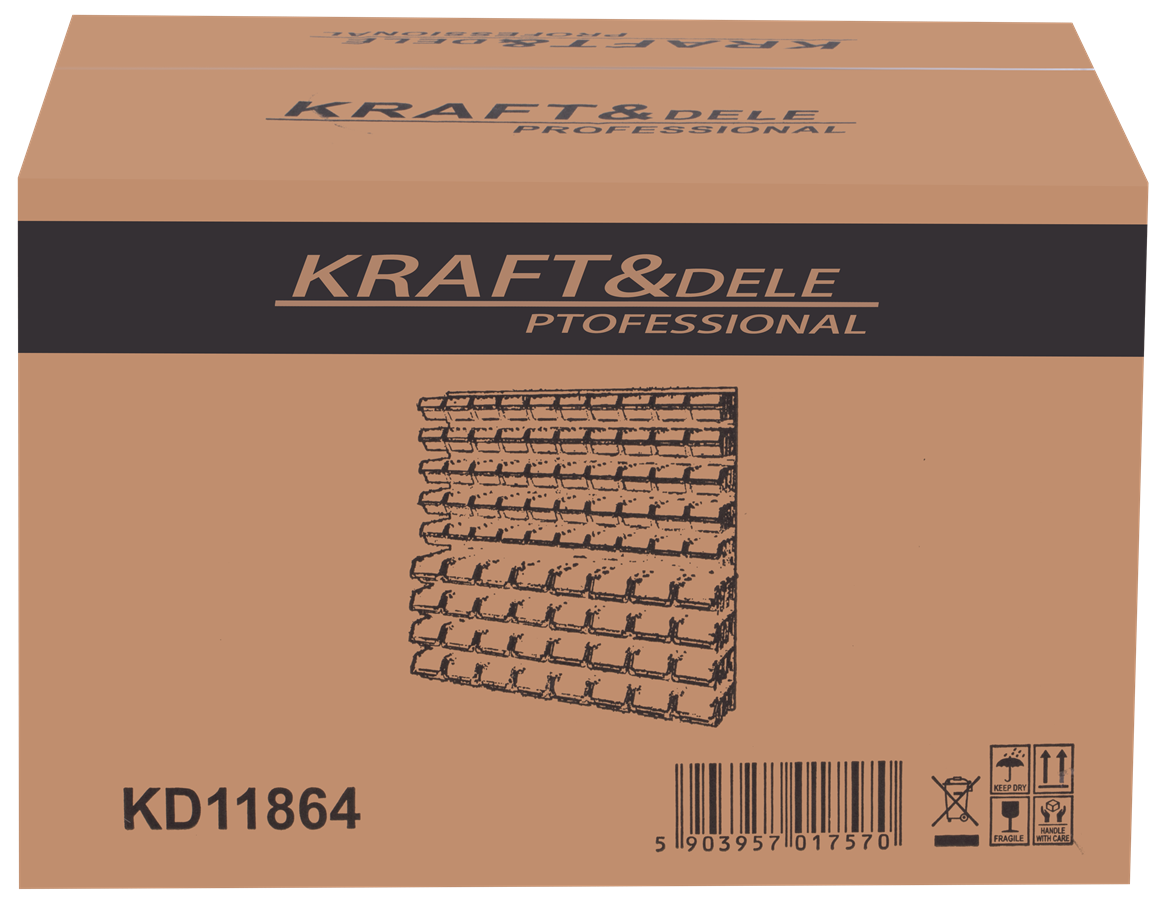 PLATĂ PENTRU COȘURI DE ATELIER KD11864 Tabla pentru coșuri de gunoi KRAFT&DELE KD11864 este un set practic care permite depozitarea, sortarea și organizarea convenabilă a diverselor obiecte mici. Datorită numeroaselor coșuri de diferite dimensiuni, fiecare articol are propriul său spațiu, facilitând menținerea ordinii în atelier, garaj sau depozit. În loc de o tablă mare, setul este împărțit în 12 table mai mici. Acest lucru vă permite să personalizați dimensiunea și forma tablei în funcție de nevoile dumneavoastră.