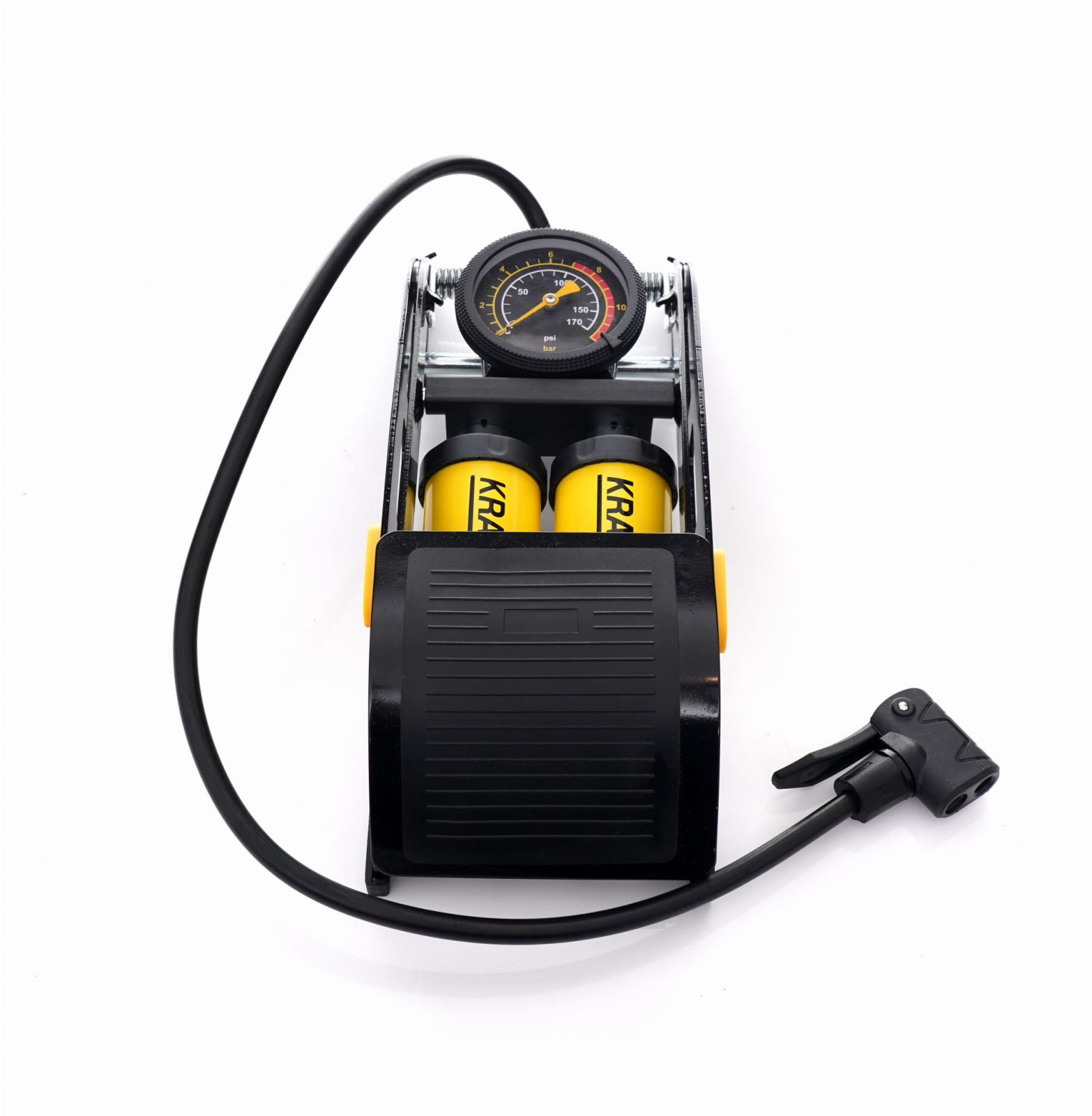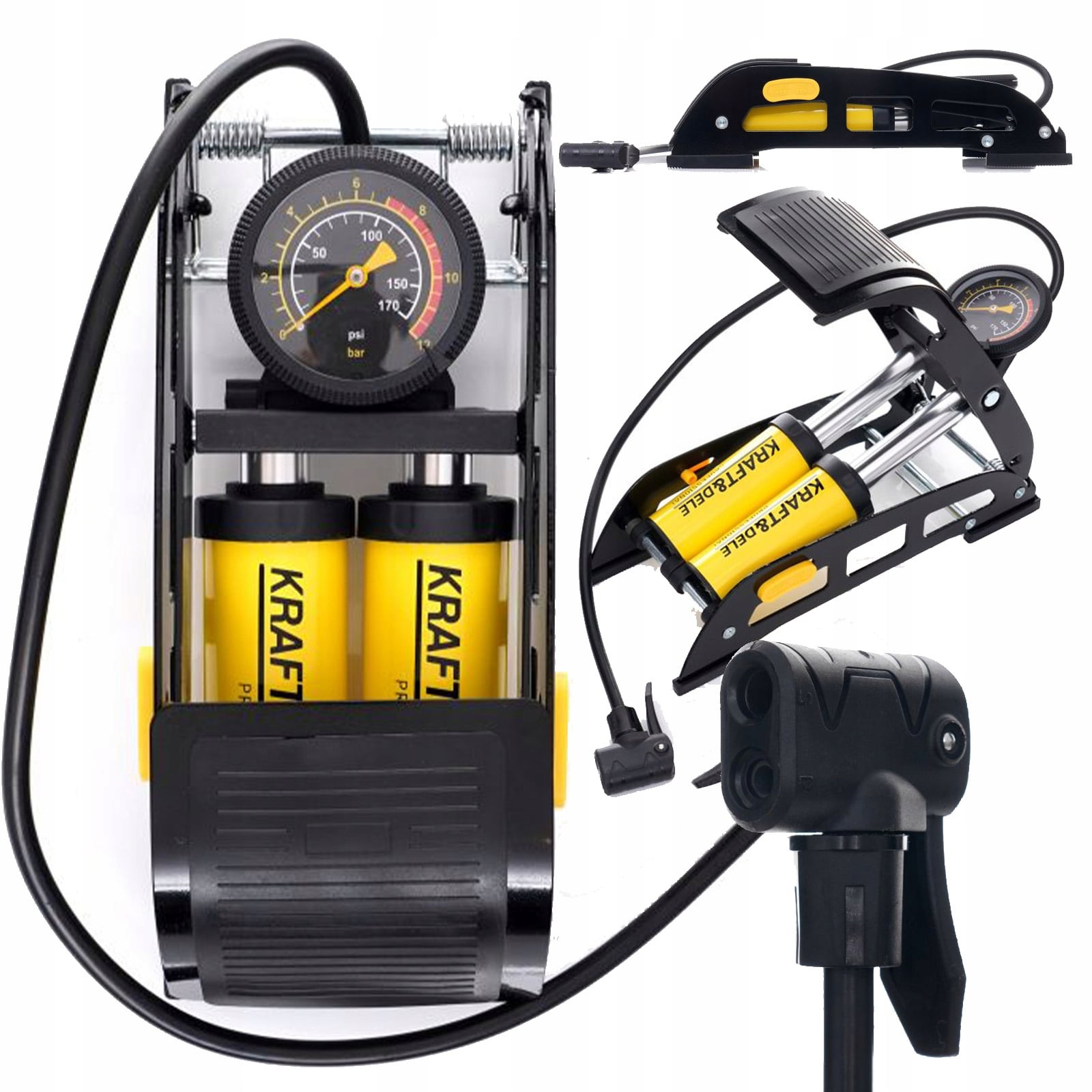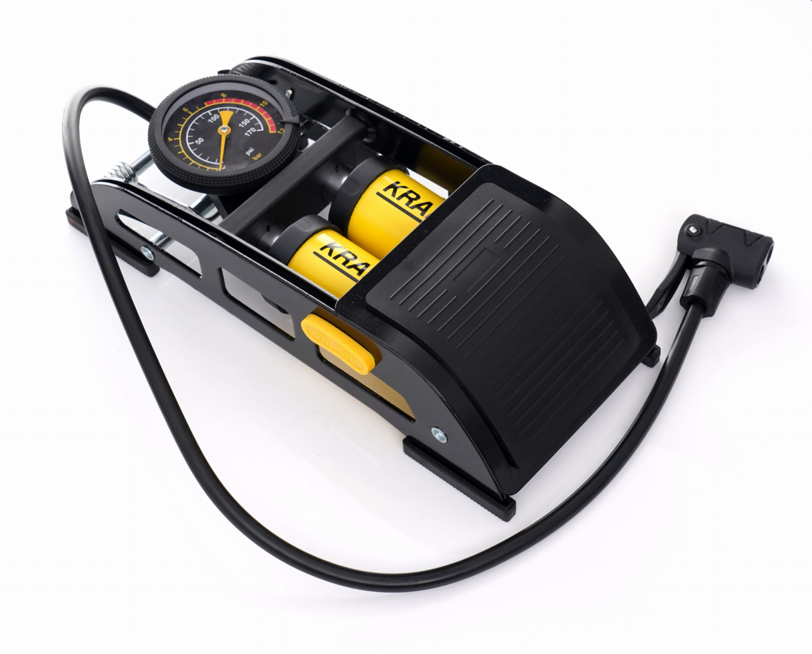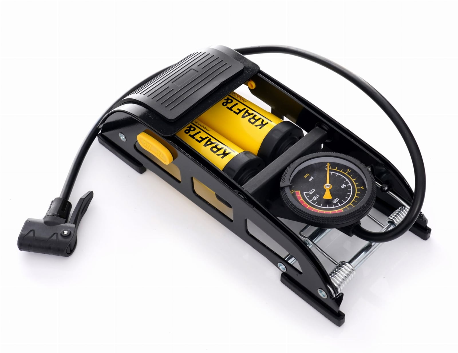 Pompa de picior Kraft & Dele KD11824 cu manometru este concepută pentru umflarea sau completarea rapidă a anvelopelor de bicicletă. Designul său cu două cilindri permite o umflare mai rapidă decât o pompă standard cu un singur cilindru.