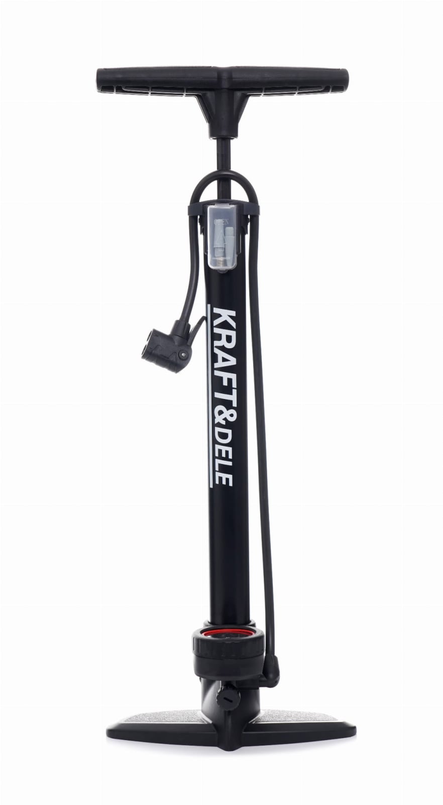Această pompă manuală pentru bicicletă Kraft & Dele KD11826 , cu manometru, este concepută pentru umflarea sau completarea rapidă a anvelopelor de bicicletă. Designul cu cap dublu se potrivește tuturor valvelor AV (Schrader), DV (Dunlop) și FV (Presta). Această pompă oferă stabilitate și confort în timpul umflării.