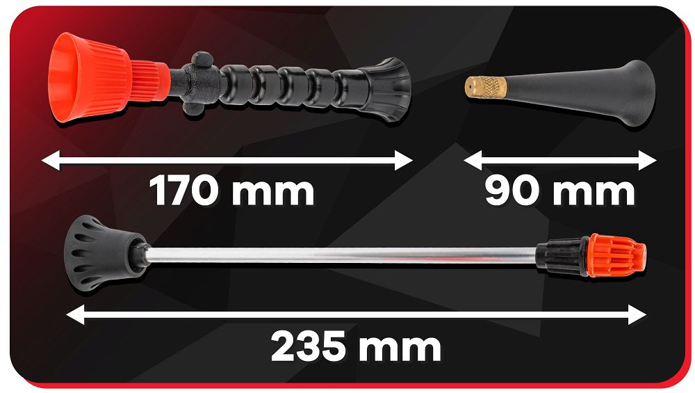 Setul include trei lănci interschimbabile care vă permit să ajustați caracteristicile pulverizării în funcție de nevoile specifice ale utilizatorului.