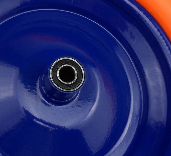 Roata din poliuretan se flexează și funcționează ca o roată pneumatică, oferind aceleași performanțe ca roțile gonflabile, fiind în același timp mai durabilă.