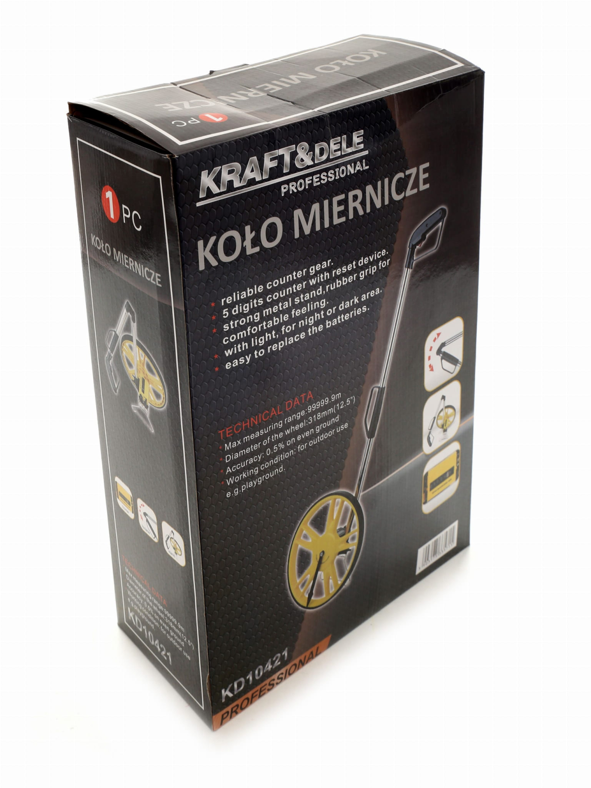 Măsurătorile se efectuează prin rotirea unei roți pe o suprafață plană, care, atunci când este rotită, activează contorul. Rezultatul măsurătorii este afișat sub formă de cifre pe un contor cu cinci cifre. Dispozitivul este echipat cu o lumină, fiind potrivit pentru utilizarea pe timp de noapte. Un suport metalic permite amplasarea verticală a dispozitivului. Acest dispozitiv este utilizat pe scară largă pentru măsurători pe teren, măsurători de drumuri, construcții, măsurători de case și grădini, suprafețe de drumuri publice, terenuri de sport, instalări de stâlpi de electricitate, plantare de copaci și multe altele.