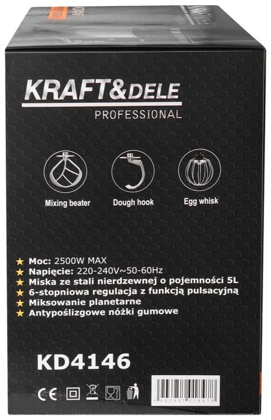 MIXER PLANETAR MAX. 2500W / 5L KD4146 Mixerul planetar KD4146 este un aparat de bucătărie puternic, cu o putere de până la 2500W și o capacitate a bolului de 5 litri.