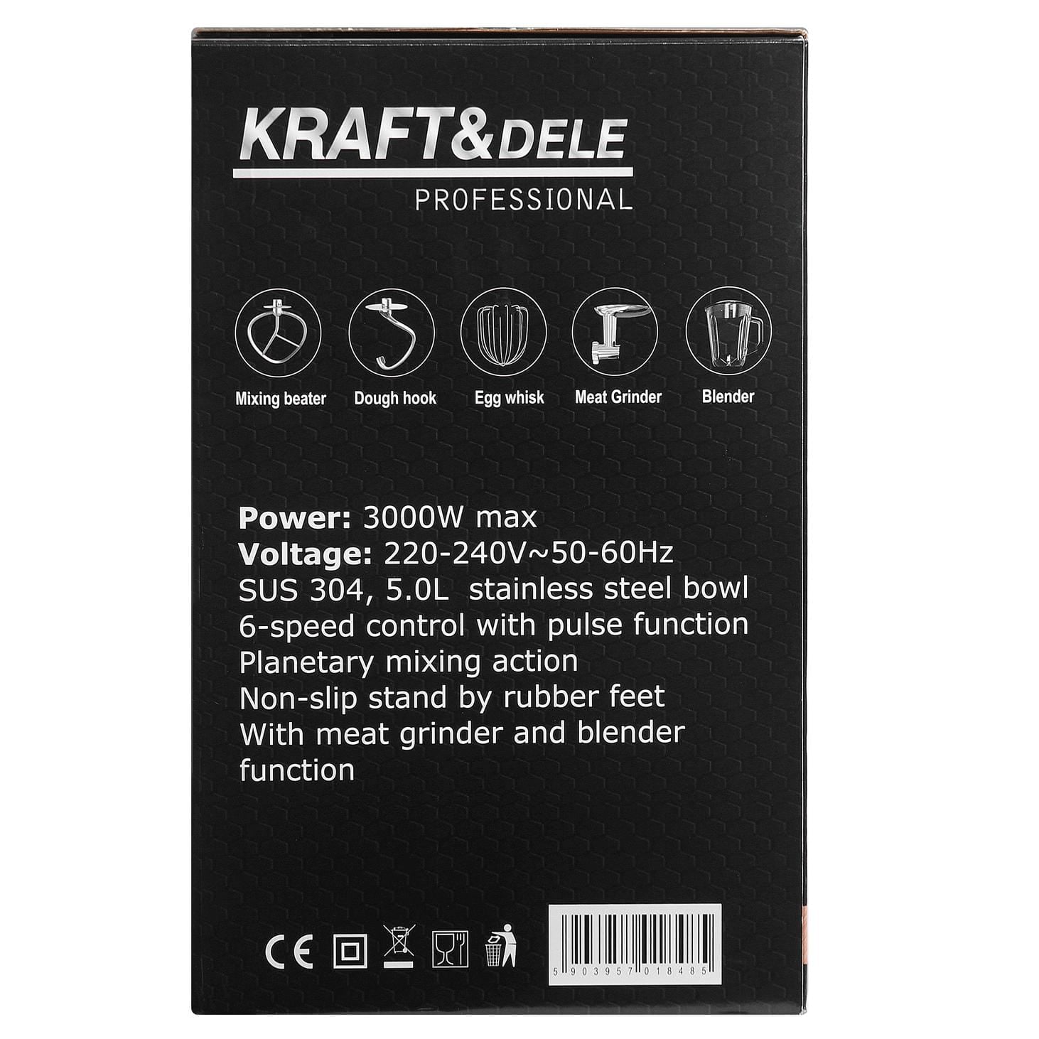 CARACTERISTICI ALE PRODUSULUI: ✅ Mișcare planetară pentru amestecare uniformă ✅ Putere maximă de până la 3000W ✅ Bol spațios din oțel inoxidabil de 5 litri ✅ Funcție de amestecare, batere și frământare ✅ Mașină de tocat carne cu set de accesorii ✅ Blender cu cană ✅ Controlul vitezei + funcție P (puls) ✅ Carcasă solidă și utilizare ușoară