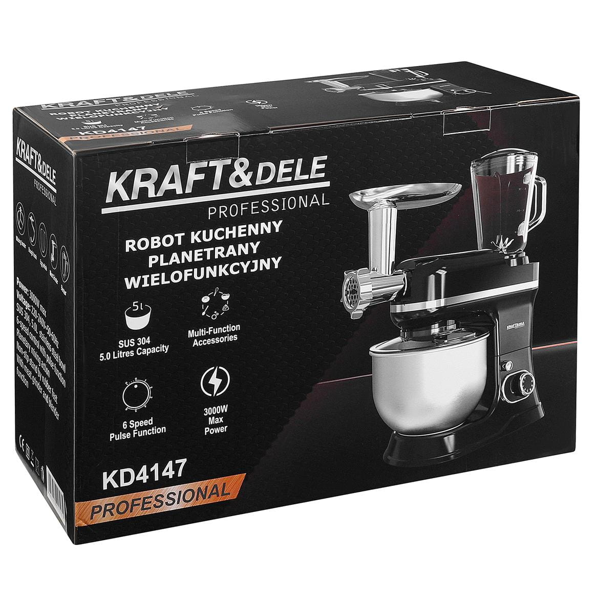 MIXER PLANETAR ROBOT MAX 3000W / 5L KD4147 Robotul de bucătărie planetar KD4147 este un aparat versatil, cu o putere maximă de 3000W și o capacitate a bolului de 5 litri. Echipat cu funcție de mișcare planetară, asigură amestecarea, frământarea și baterea perfectă a ingredientelor. Datorită setului său extins de accesorii, poate funcționa ca mixer, mașină de tocat carne și blender tip ulcior. Construcția sa robustă și controlul variabil al vitezei îl fac un ajutor indispensabil în bucătărie.