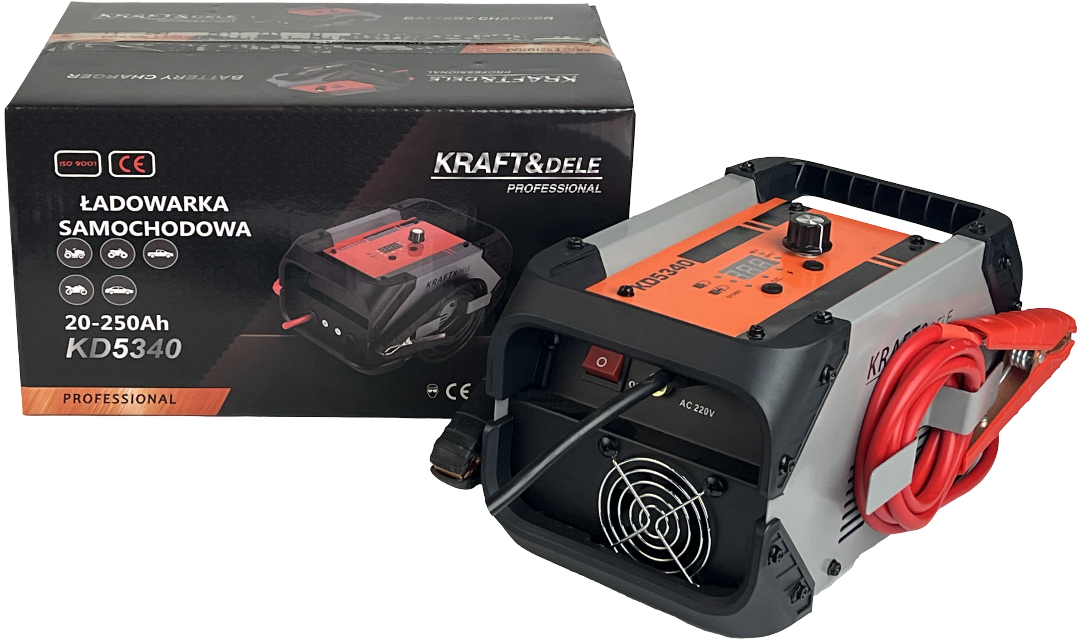 KD5340 este un încărcător auto modern de la KRAFT&DELE, conceput pentru încărcarea rapidă și inteligentă a bateriilor din autoturisme, SUV-uri și motociclete. Datorită tehnologiei avansate de invertor, dispozitivul funcționează cu o eficiență de până la 90%, asigurând încărcarea stabilă și sigură a bateriilor cu capacități cuprinse între 20 și 250 Ah. Încărcătorul detectează automat tensiunea bateriei (12V sau 24V), ajustează curentul de încărcare și utilizează un sistem extins de protecție în 8 etape. KD5340 oferă, de asemenea, o funcție de pornire asistată, permițându-vă să porniți vehiculul chiar și cu o baterie complet descărcată. Este ideal atât pentru uz casnic, cât și profesional.