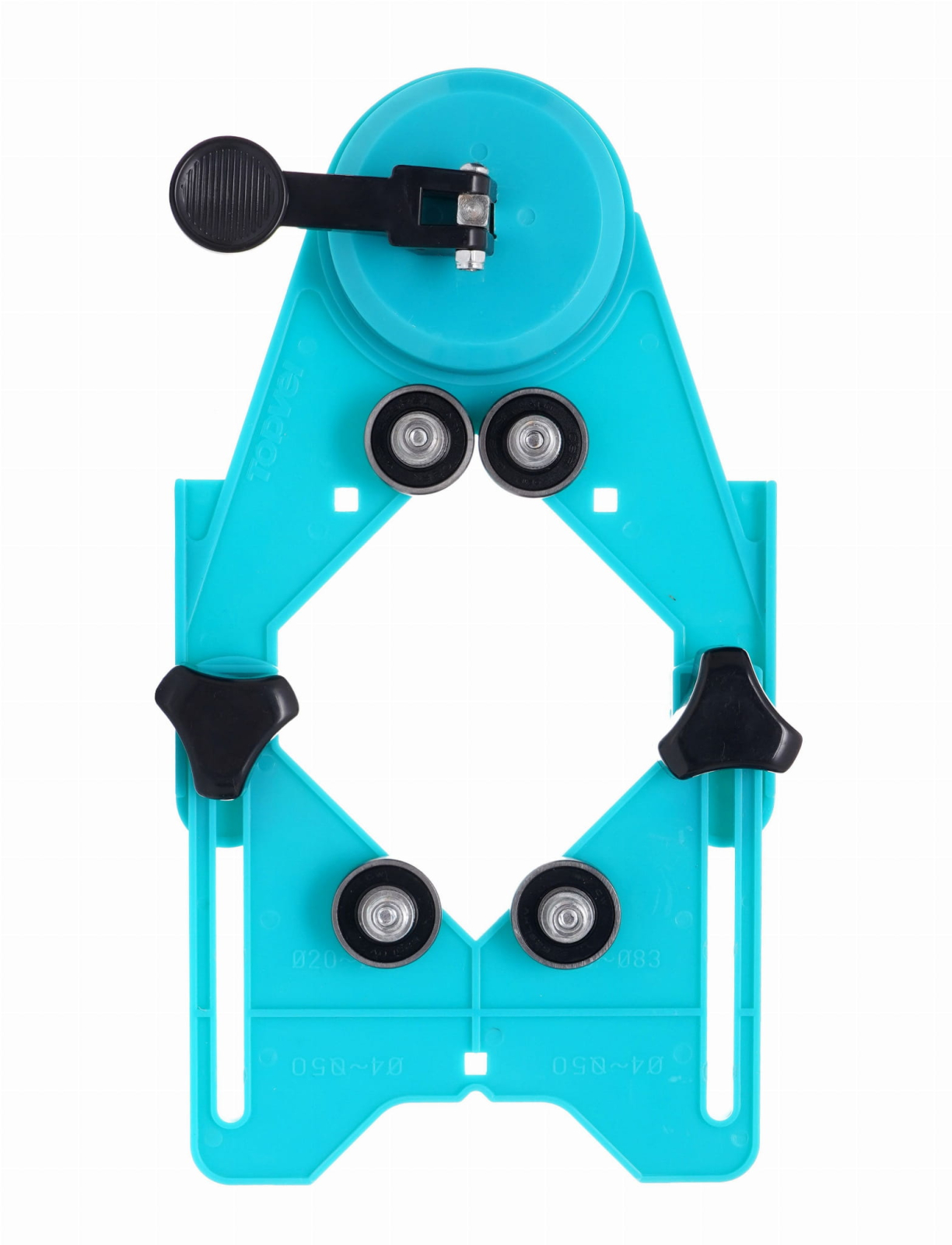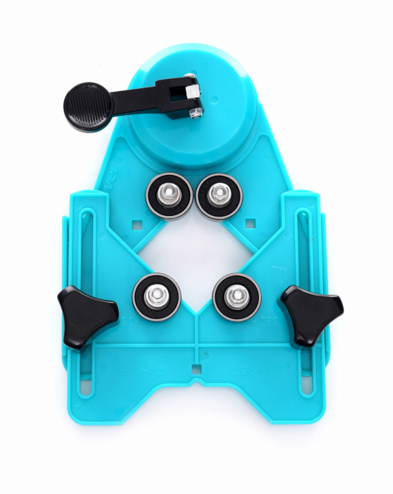 Dispozitivul este echipat cu patru rulmenți complet reglabili, independenți. Adaptat pentru a manipula carote în intervalul 4 mm - 83 mm. Calibrul este fixat cu o ventuză durabilă. Datorită acestui fapt, puteți face găuri chiar și pe un perete care a fost deja lipit.